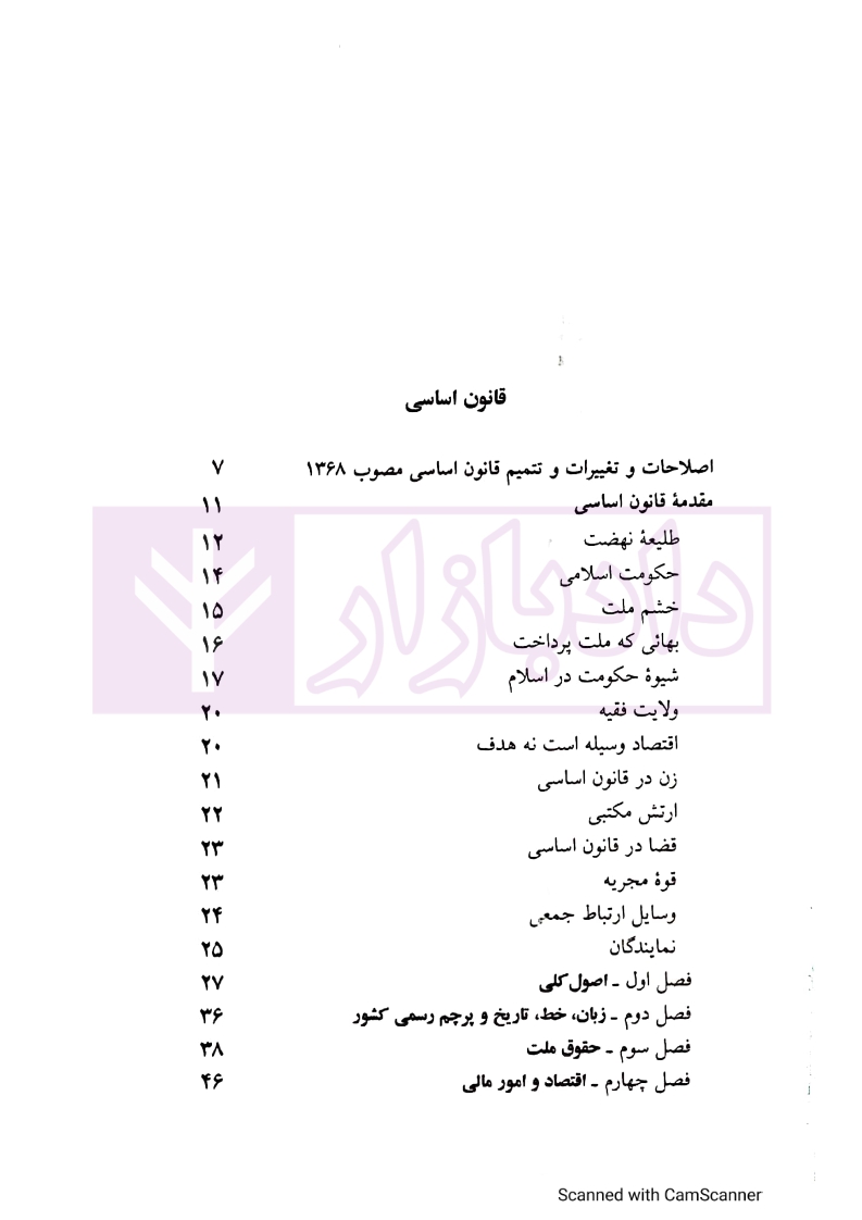 کتاب قانون اساسی جمهوری اسلامی ایران شامل قانون اساسی مصوب 1357 و اصلاحات و تغییرات و تتمیم قانون اساسی مصوب 1368 میباشد.