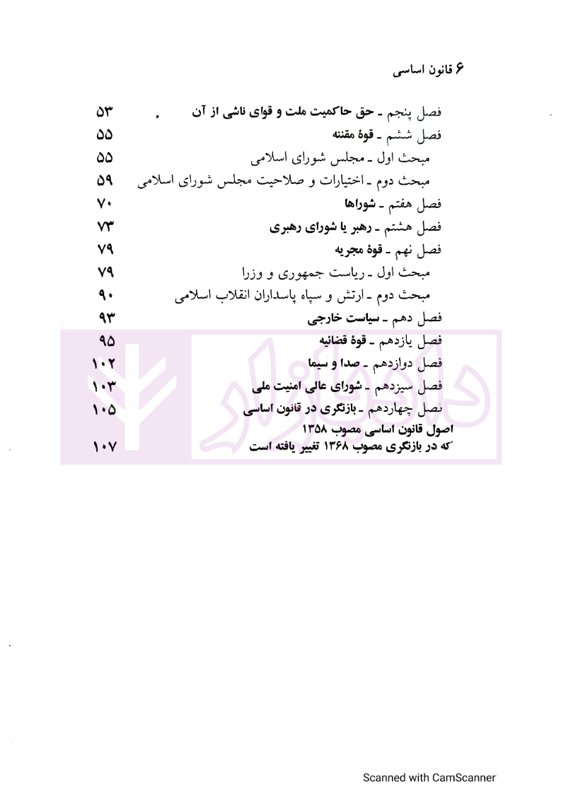 اصول قانون اساسی مصوب 1358 که در آن بازنگری مثوب 1368 تغییر یافته است