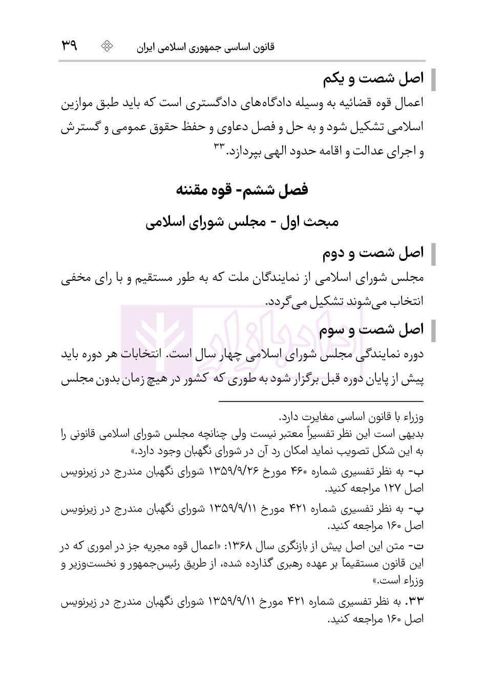 - فصل ششم- قوه مقننه (اصل 62 تا 99)
