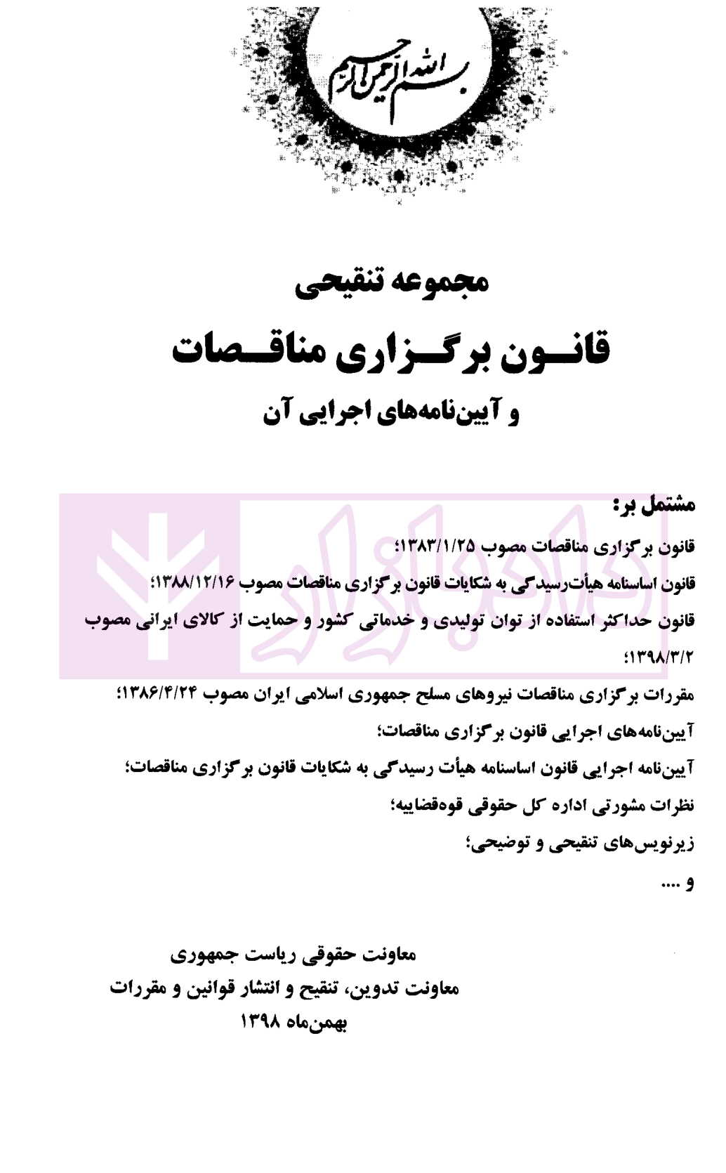 مشخصات و ویژگی کتاب قانون برگزاری مناقصات | معاونت حقوقی ریاست جمهوری