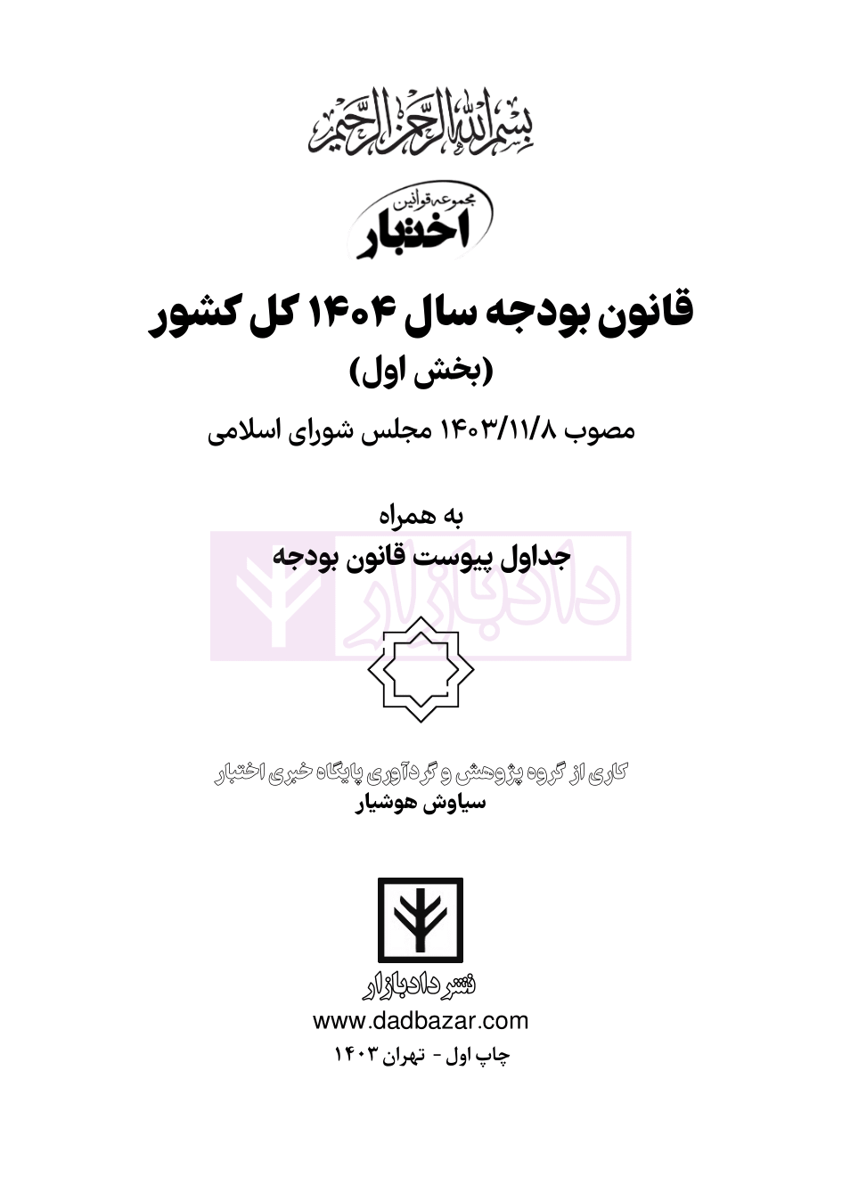 معرفی و فهرست کتاب قانون بودجه سال 1404 کل کشور | هوشیار