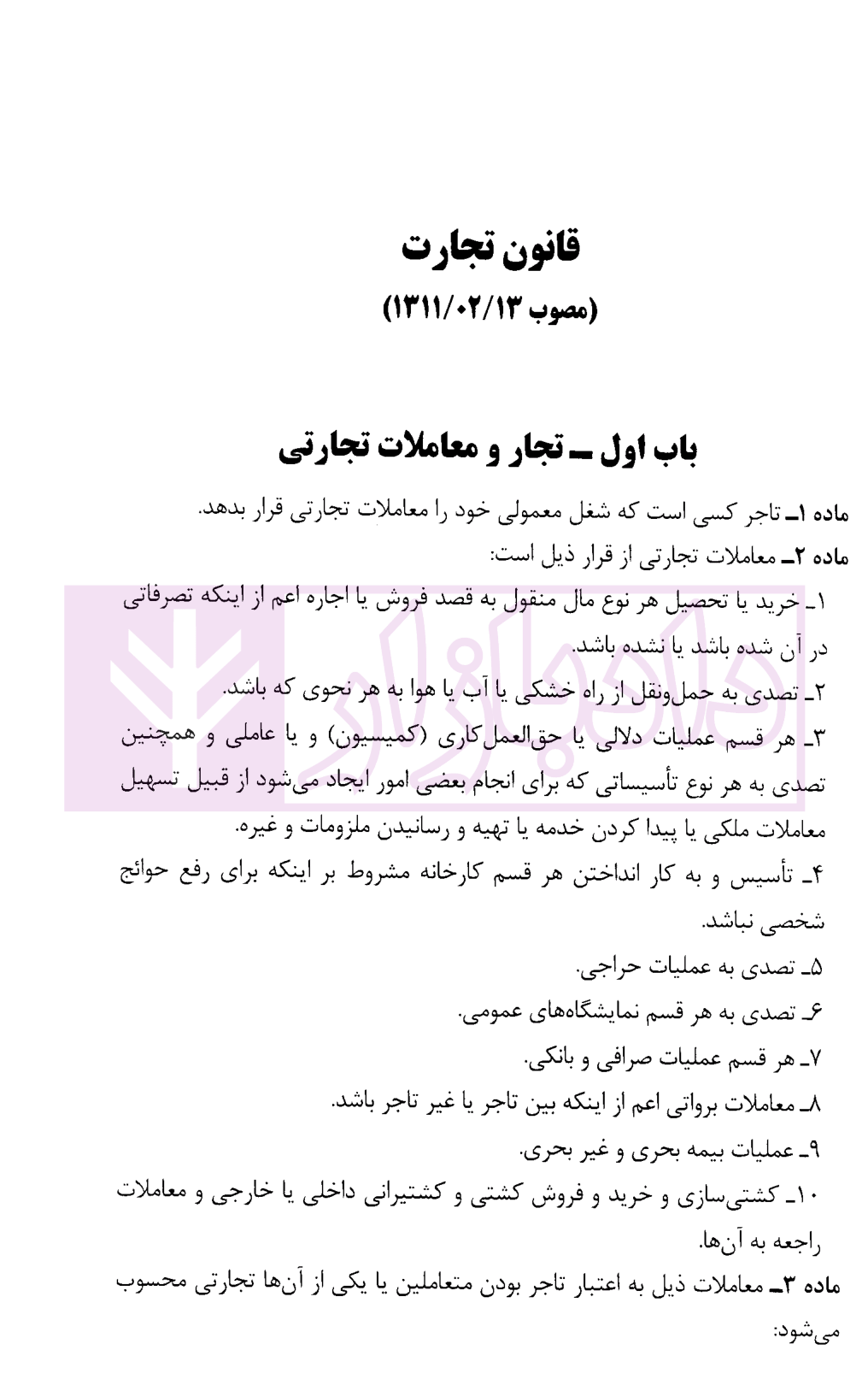 مشخصات و ویژگی کتاب قانون تجارت | موسسه حقوقی شهردانش
