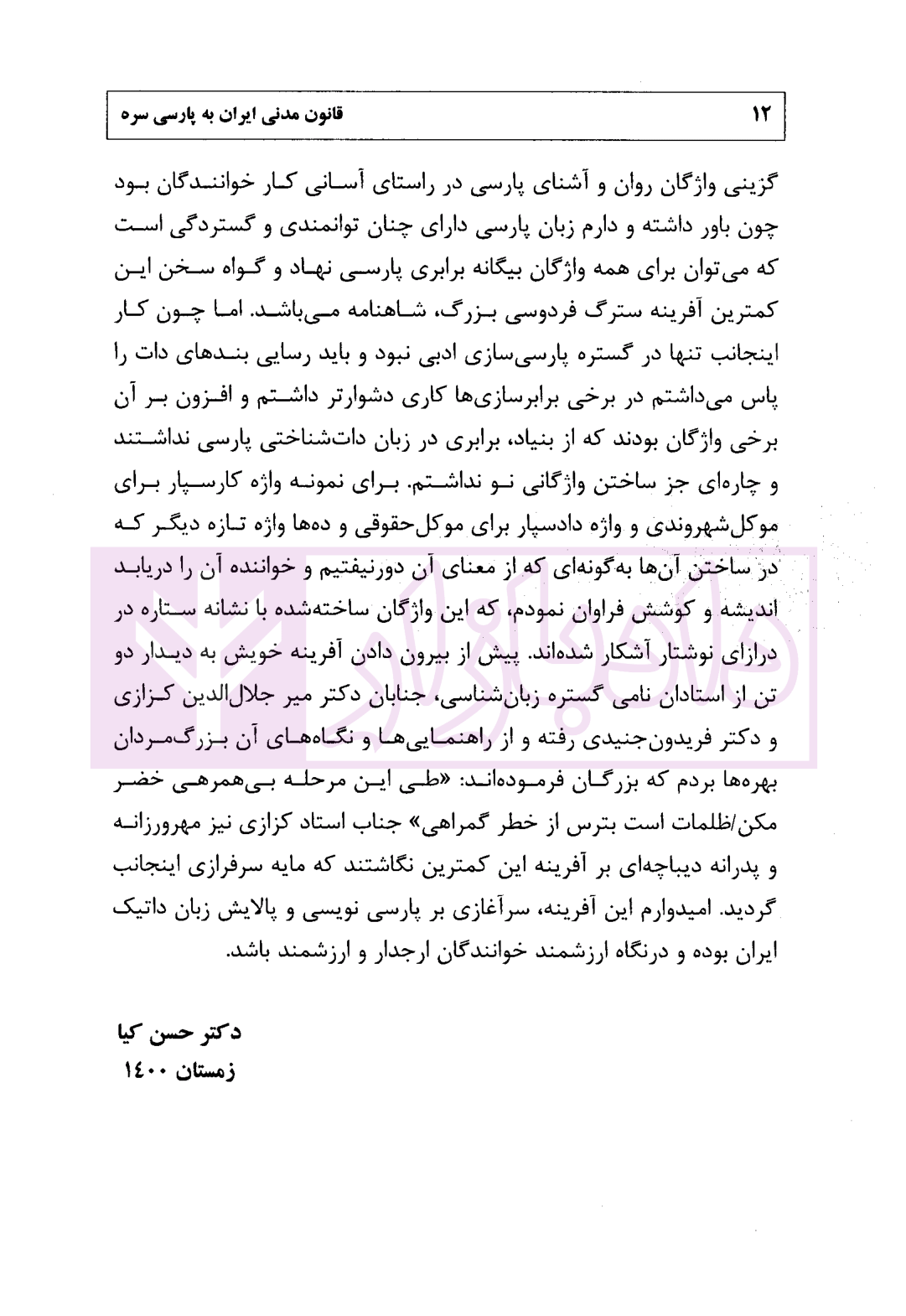 امتیاز و دیدگاه کاربران قانون مدنی ایران به پارسی سره | دکتر کیا
