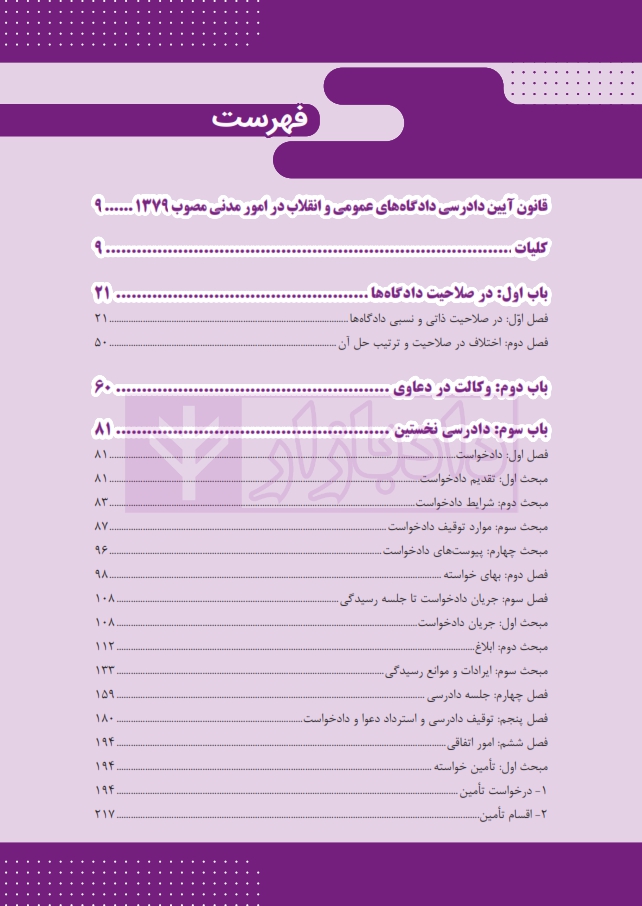 کتاب قانون یار آیین دادرسی مدنی شامل مواد قانون و نکات مهم و به همراه تست های برگزیده آزمونی ذیل هر ماده مرتبط همراه با پاسخ نامه میباشد.