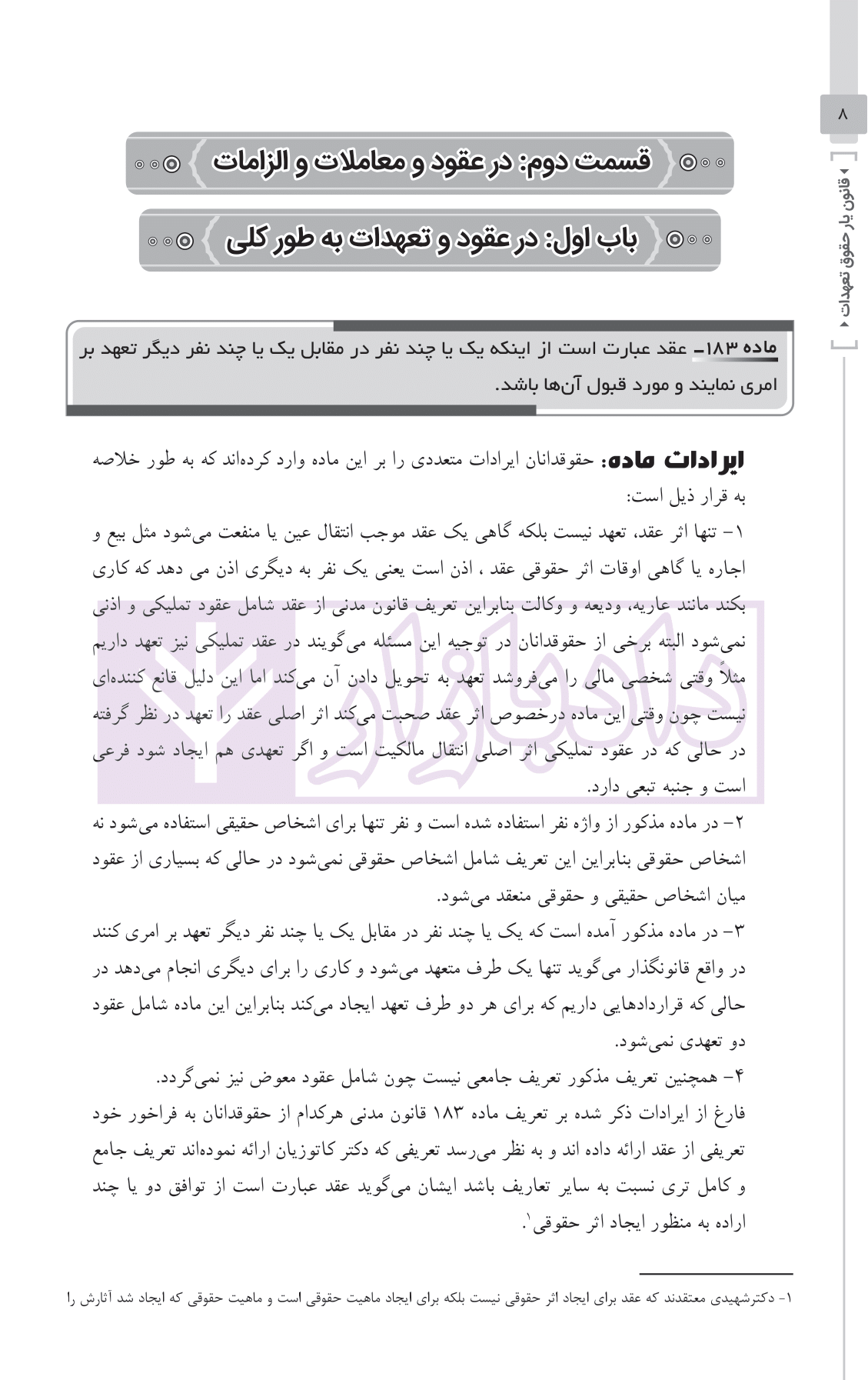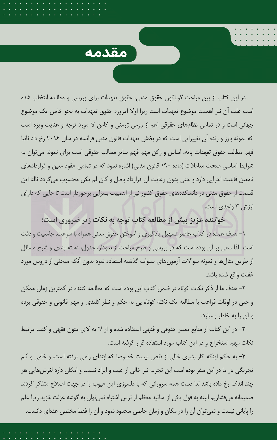 ویژگی های اصلی قانون یار حقوق تعهدات