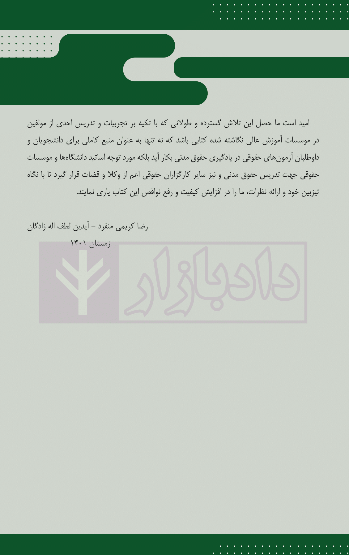 معرفی و فهرست کتاب قانون یار حقوق تعهدات | کریمی منفرد و لطف اله زادگان