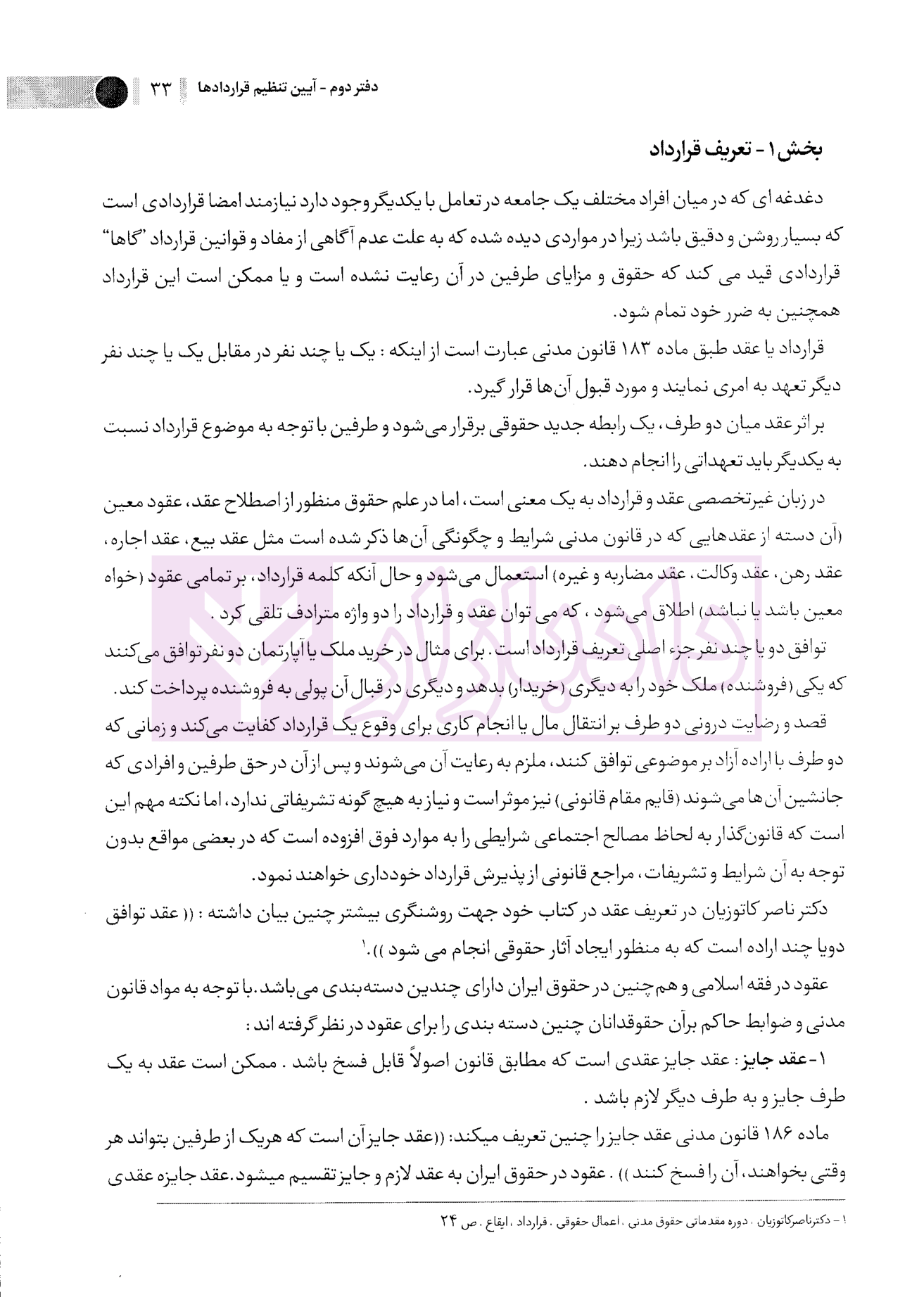- دفتر دوم:آیین تنظیم قرارداد ها