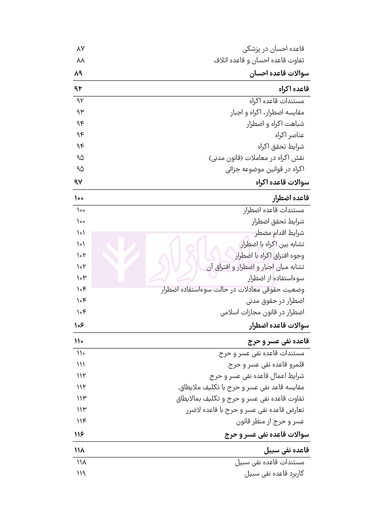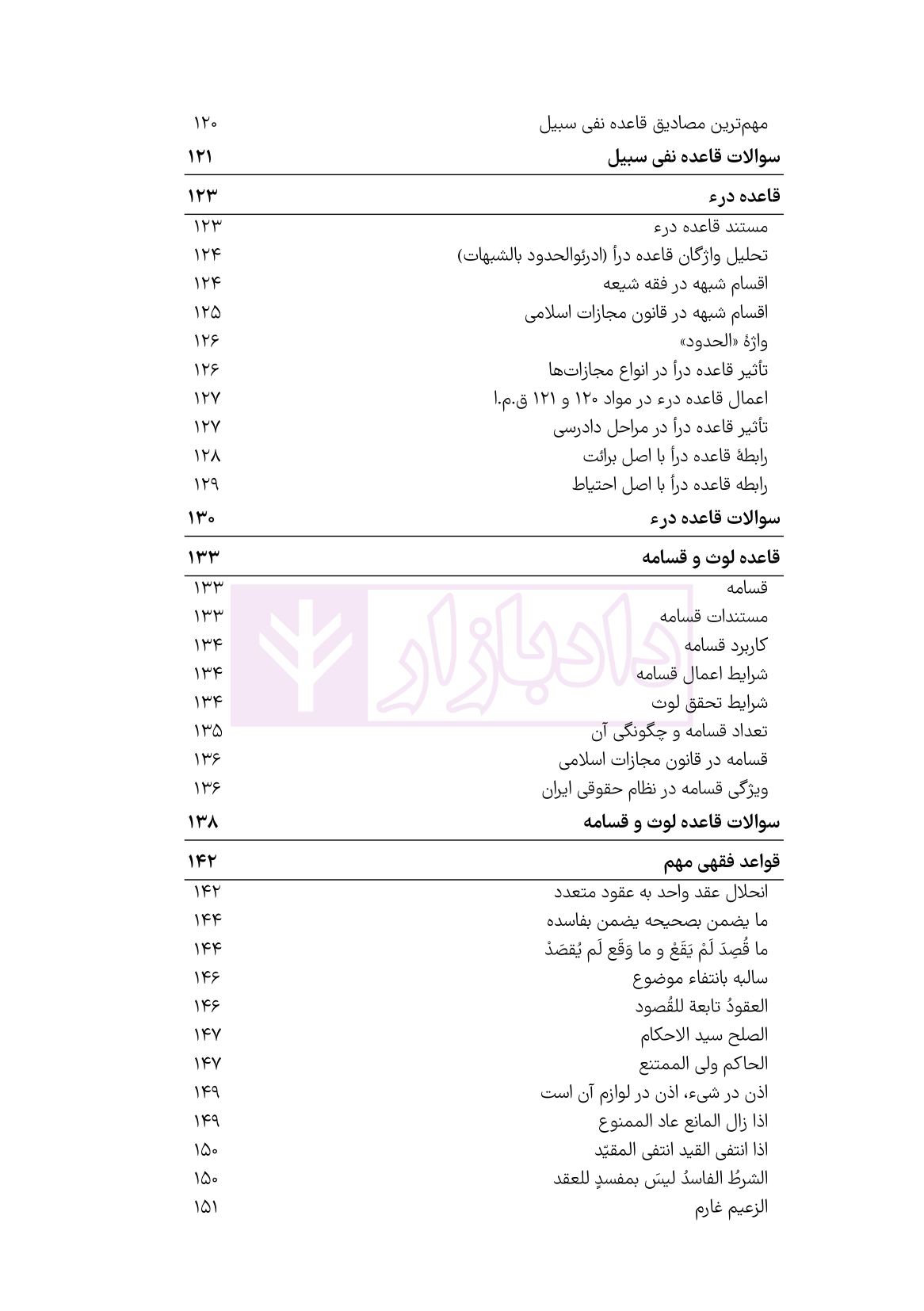 عناوین اصلی کتاب قواعد فقه به بیان ساده باقری راد