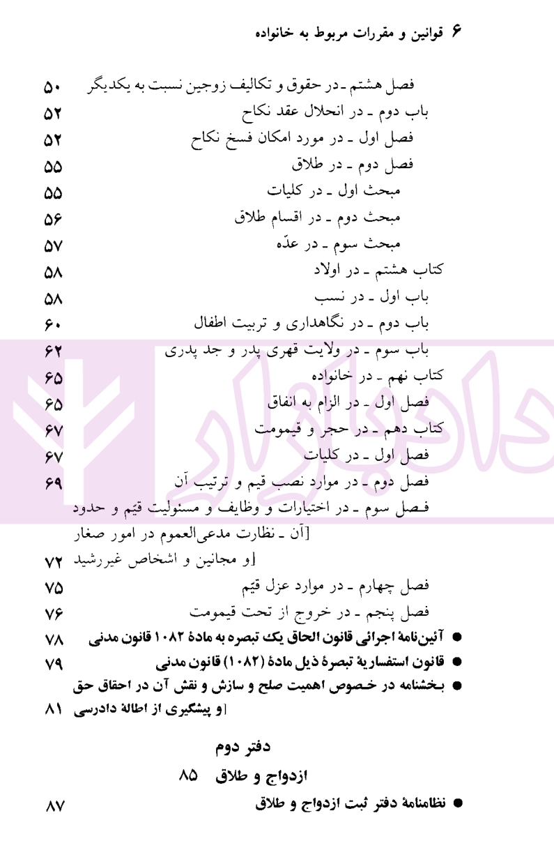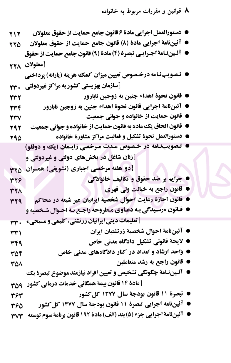مشخصات و ویژگی کتاب قوانين و مقررات مربوط به خانواده | منصور