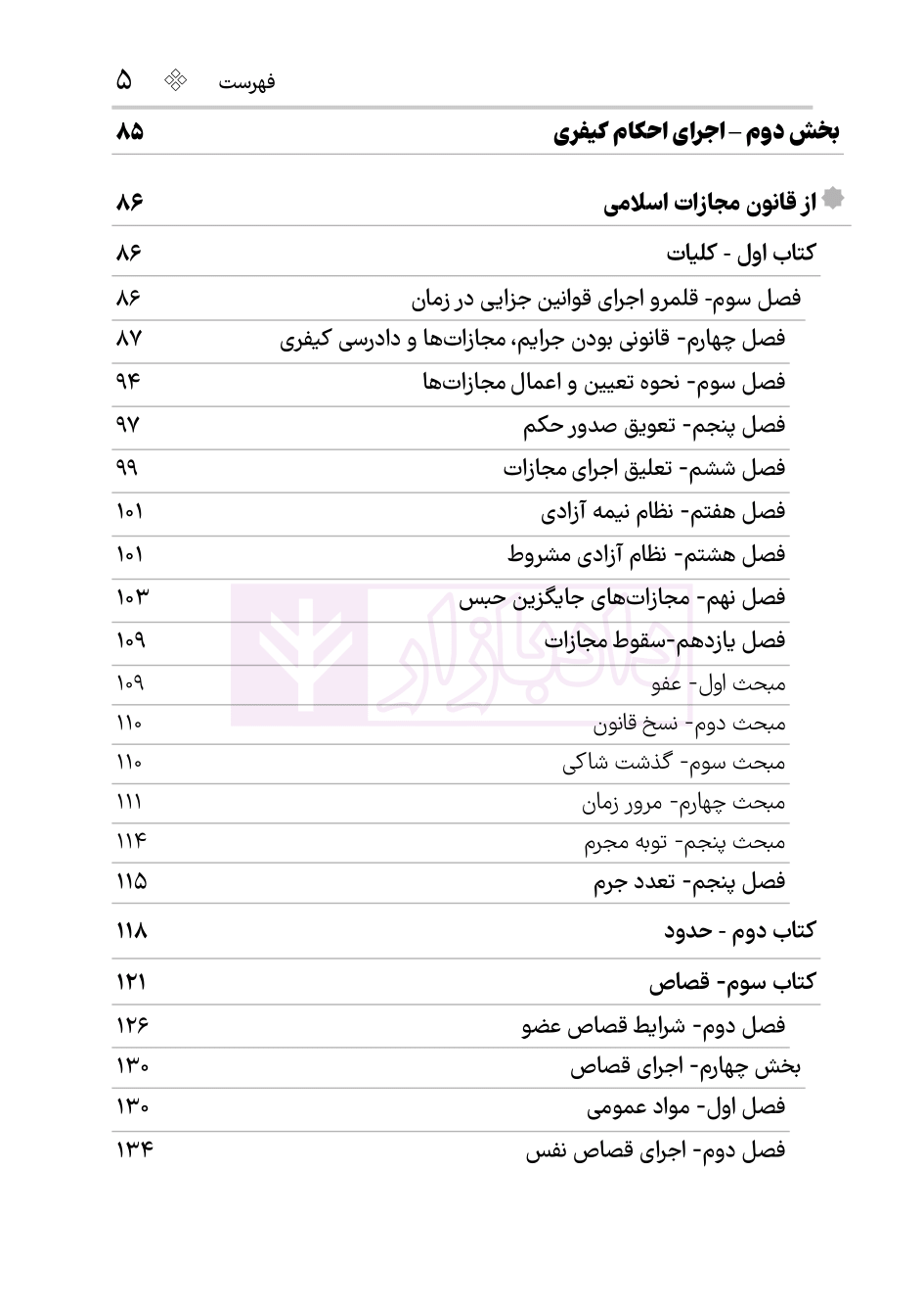 - شامل بخشهای مرتبط قانون آیین دادرسی کیفری، قانون مجازات اسلامی و آییننامه نحوه اجرای احکام حدود، سلب حیات …