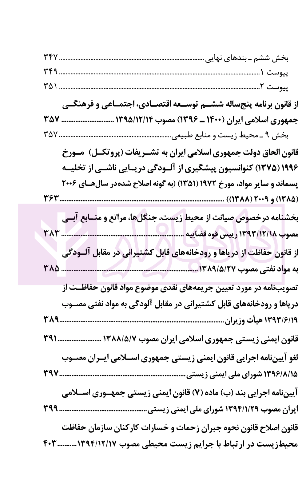 مشخصات و ویژگی کتاب مجموعه قوانین و مقررات حفاظت از محیط زیست (رقعی) | انتشارات قوه قضاییه