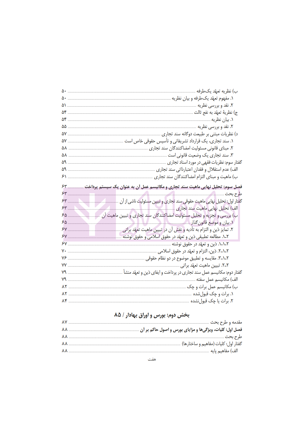 فهرست عناوین مباحثی تحلیلی از حقوق تجارت عبدی پورفرد