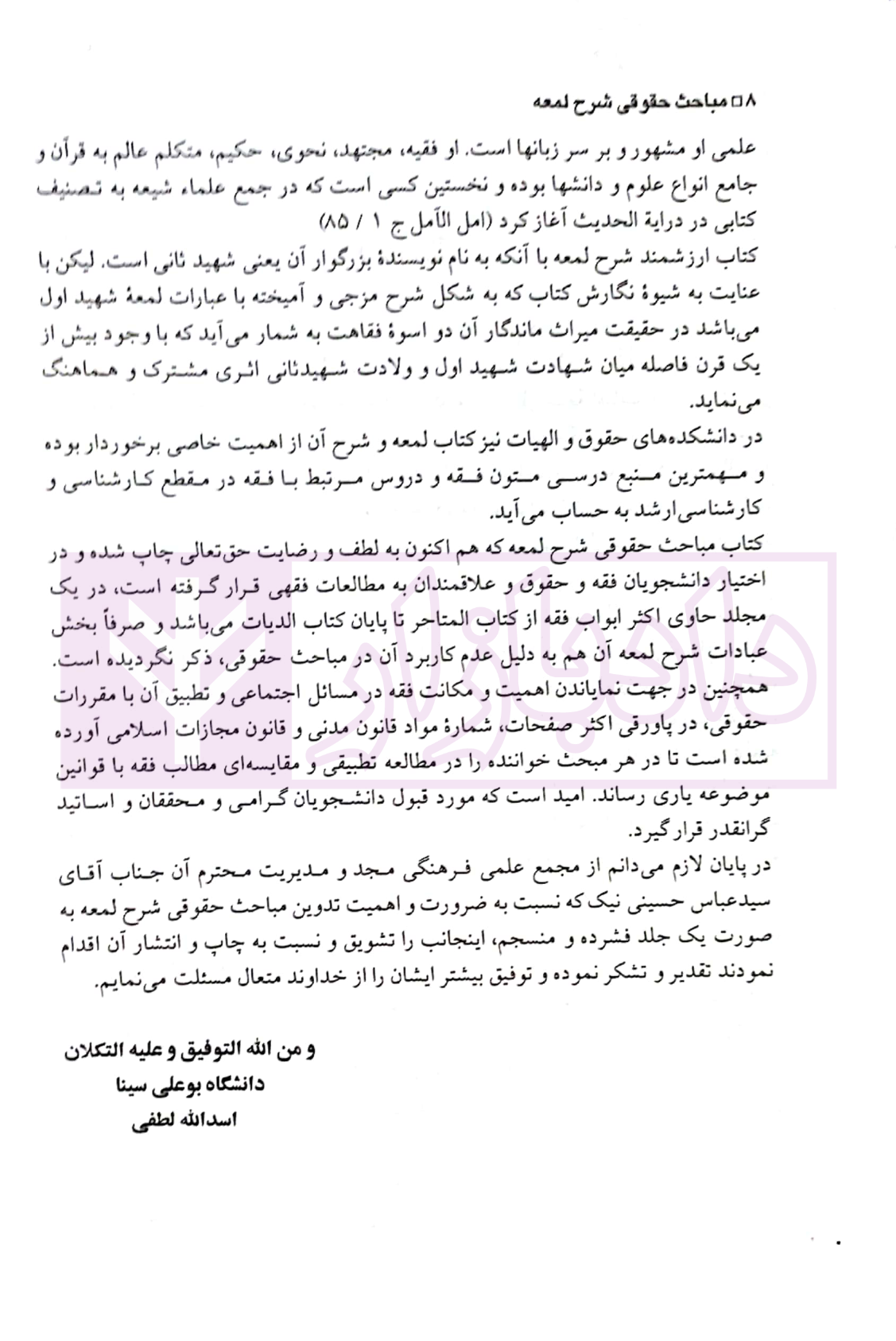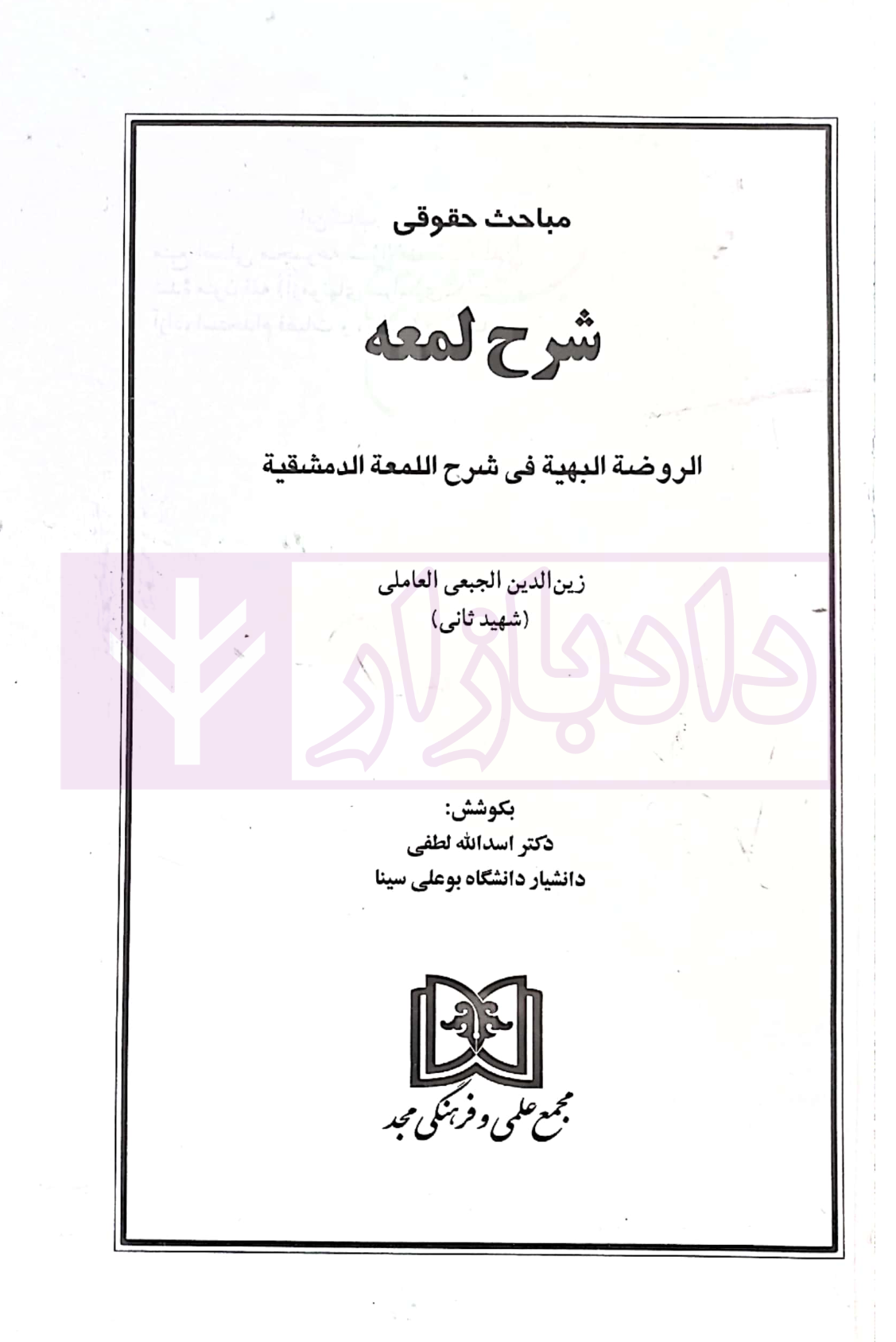 کتاب مباحث حقوقی شرح لمعه نوشته دکتر اسدالله لطفی ابواب حقوقی الروضه البهیه فی شرح اللمعه دمشقیه شهید ثانی منطبق بر قانون مدنی و مجازات اسلامی گردآوری شده است.