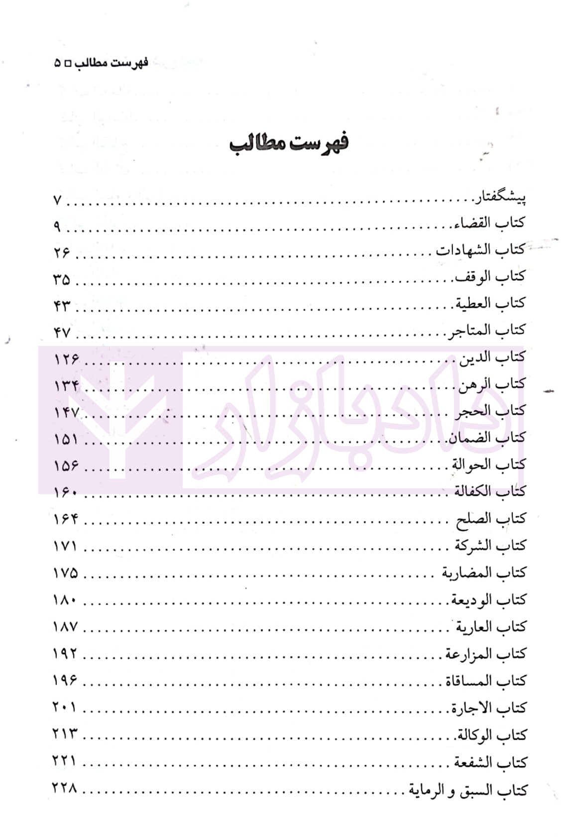 فهرست عناوین مباحث حقوقی شرح لمعه