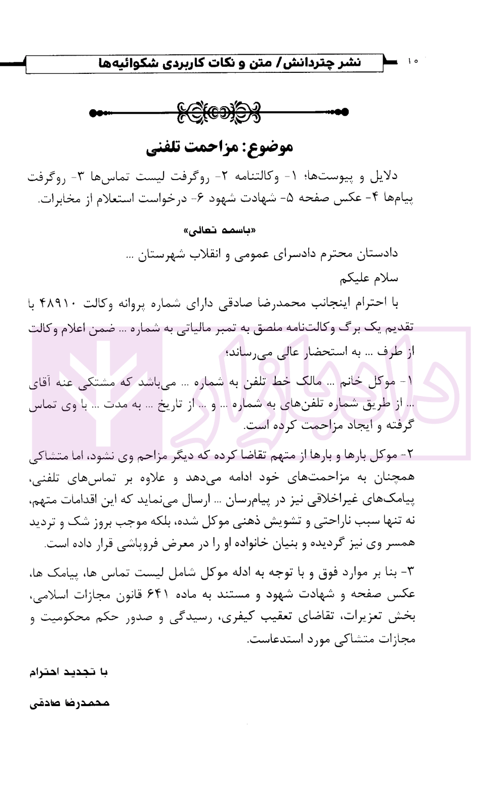 متن و نکات کاربردی شکوائیه ها | صادقی