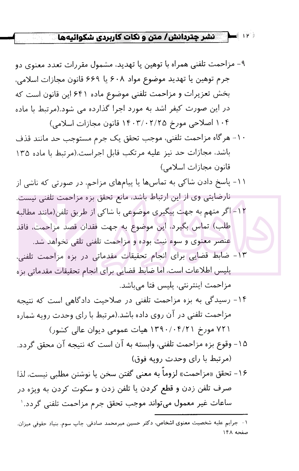 متن و نکات کاربردی شکوائیه ها نوشته محمدرضا صادقی شامل متون شکوائیه های کاربردی به همراه نکات مرتبط مستند به قوانین می‌باشد.