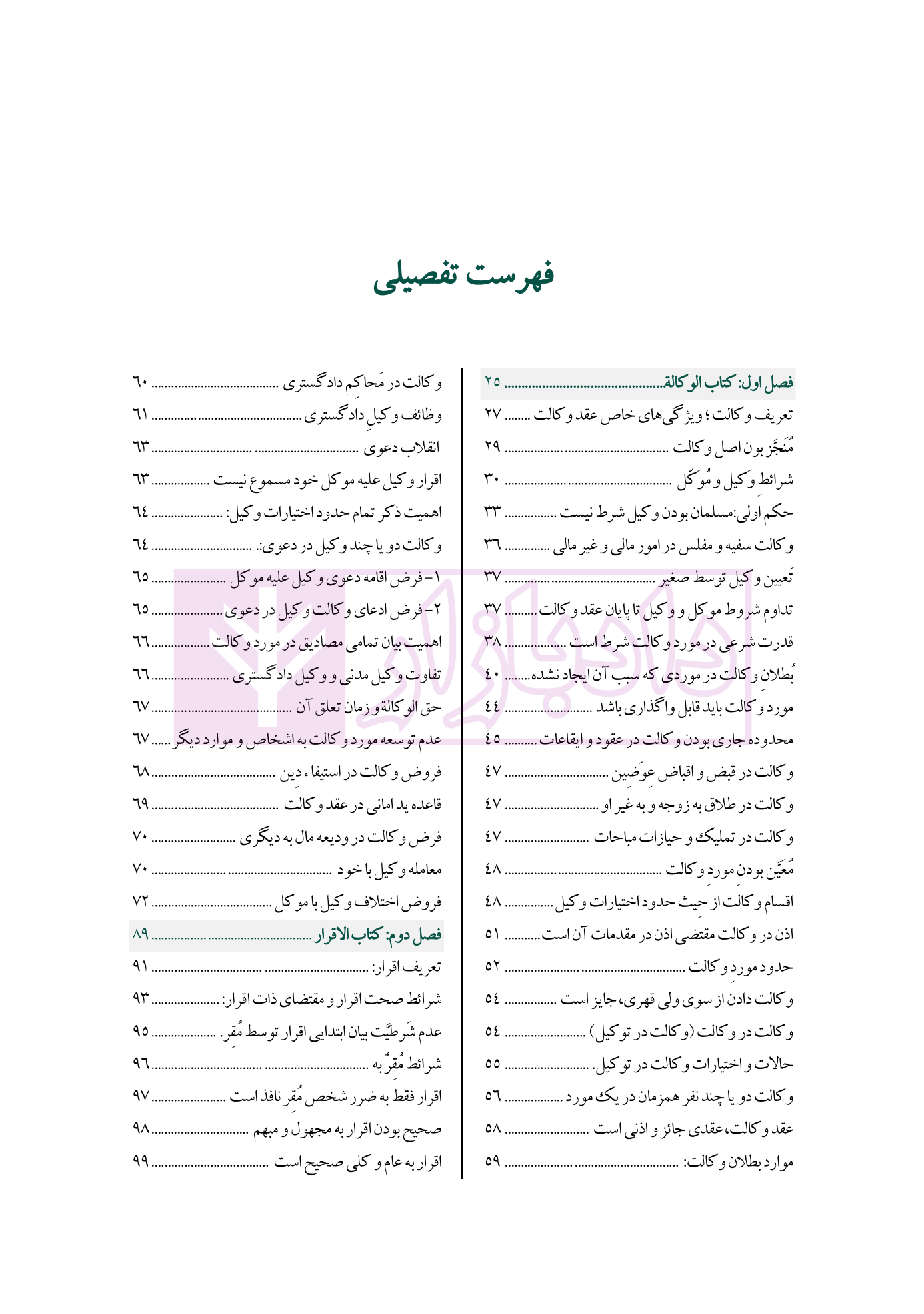 کتاب حاضر شامل آموزش آزمونی کتاب الوکالة، کتاب الإقرار، کتاب الایمان، کتاب القضا و کتاب الشهادت، کتاب الوکاله، کتاب الشهادات، می شود.