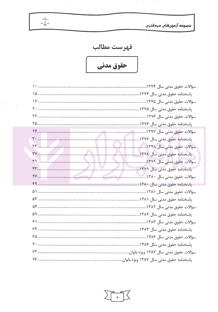 کتاب مجموعه آزمون های سردفتری اسناد رسمی نوشته منصور قرائی شامل سوالات آزمون های سردفتری اسناد رسمی به صورت طبقه بندی شده همراه با پاسخ تشریحی می‌باشد.
