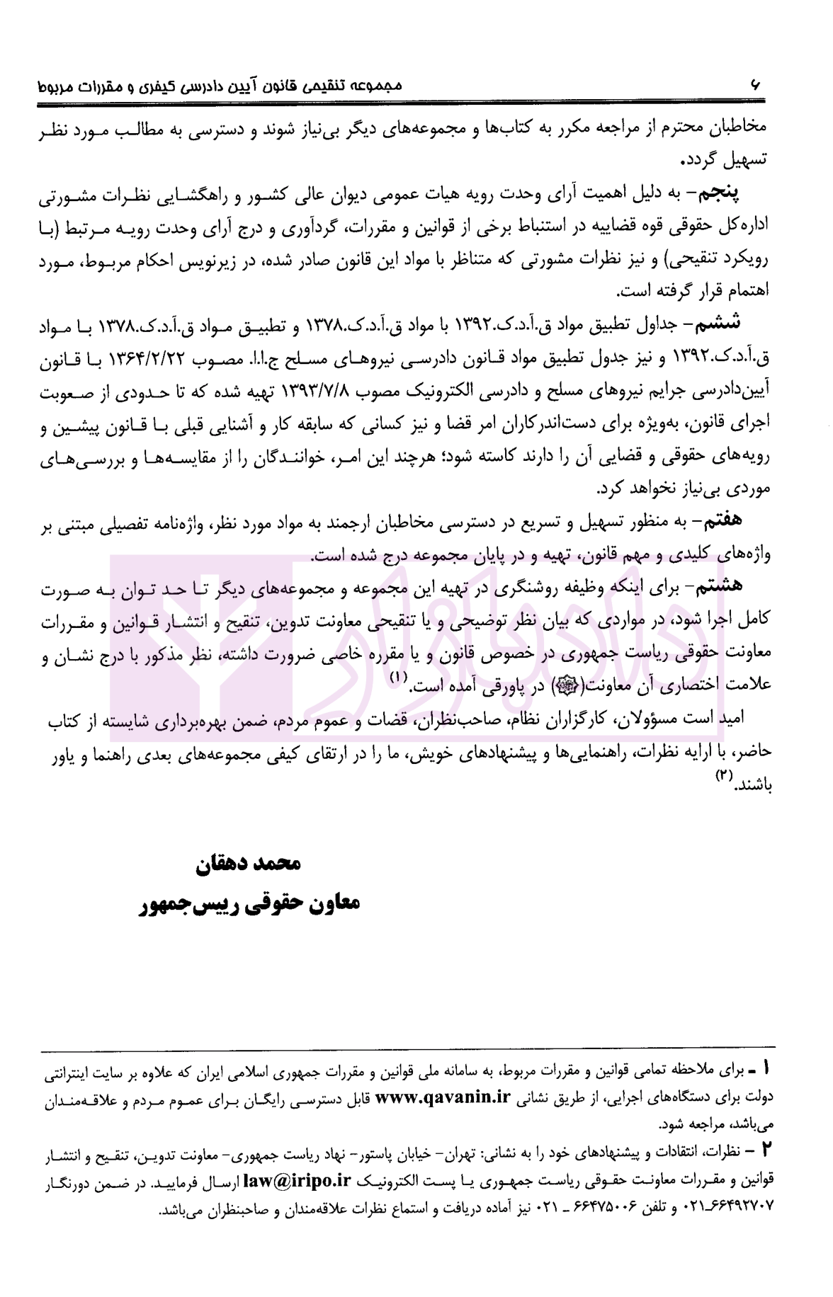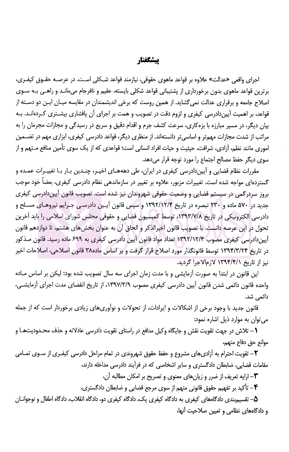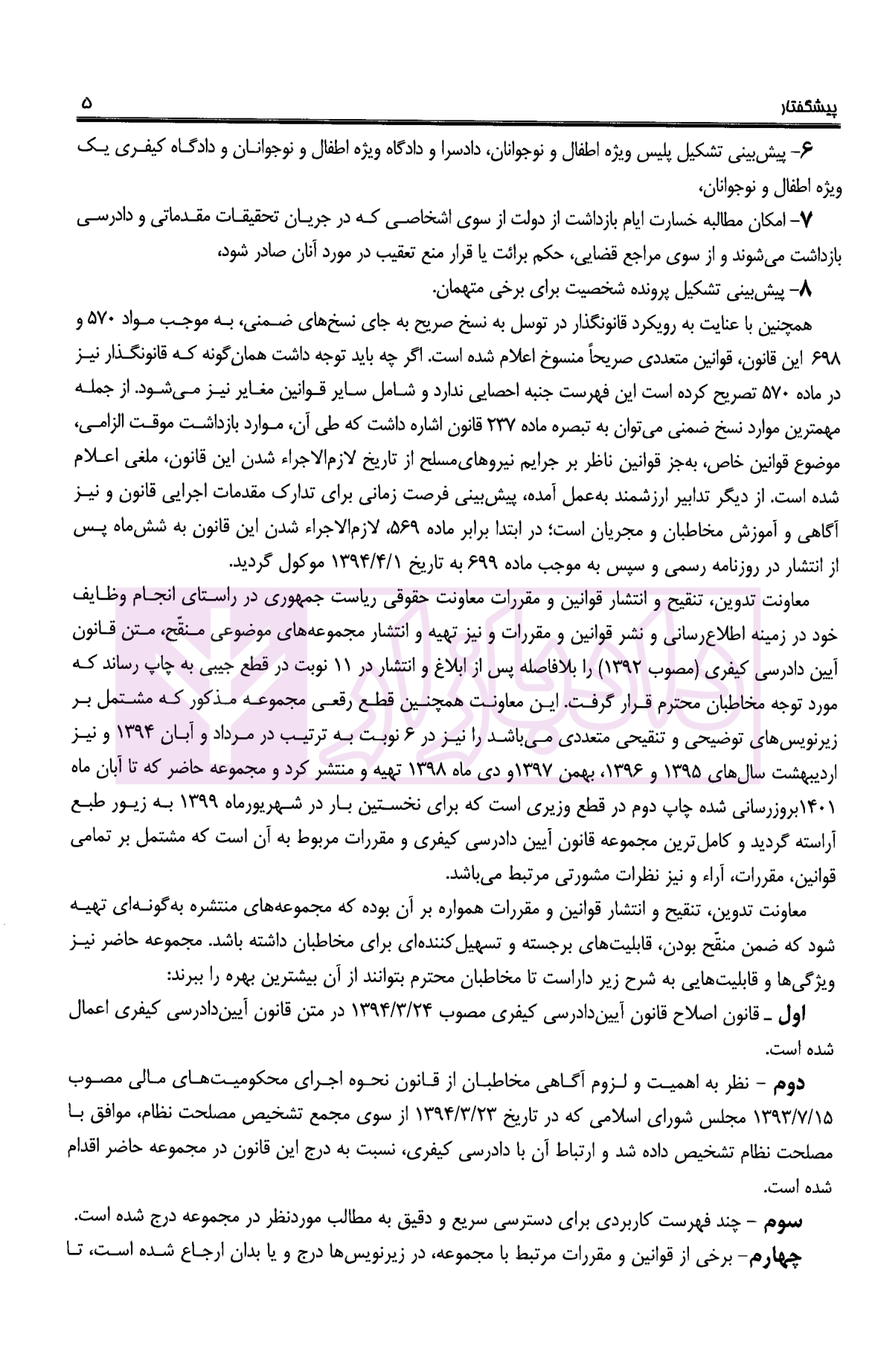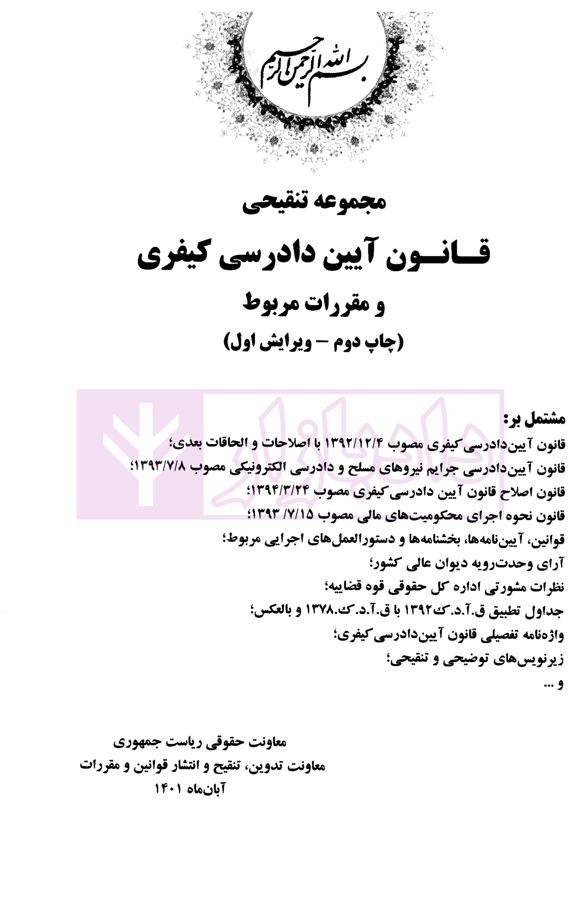 مشخصات و ویژگی کتاب مجموعه تنقیحی قانون آیین دادرسی کیفری و مقررات مربوط (جلد سخت) | معاونت حقوقی ریاست جمهوری