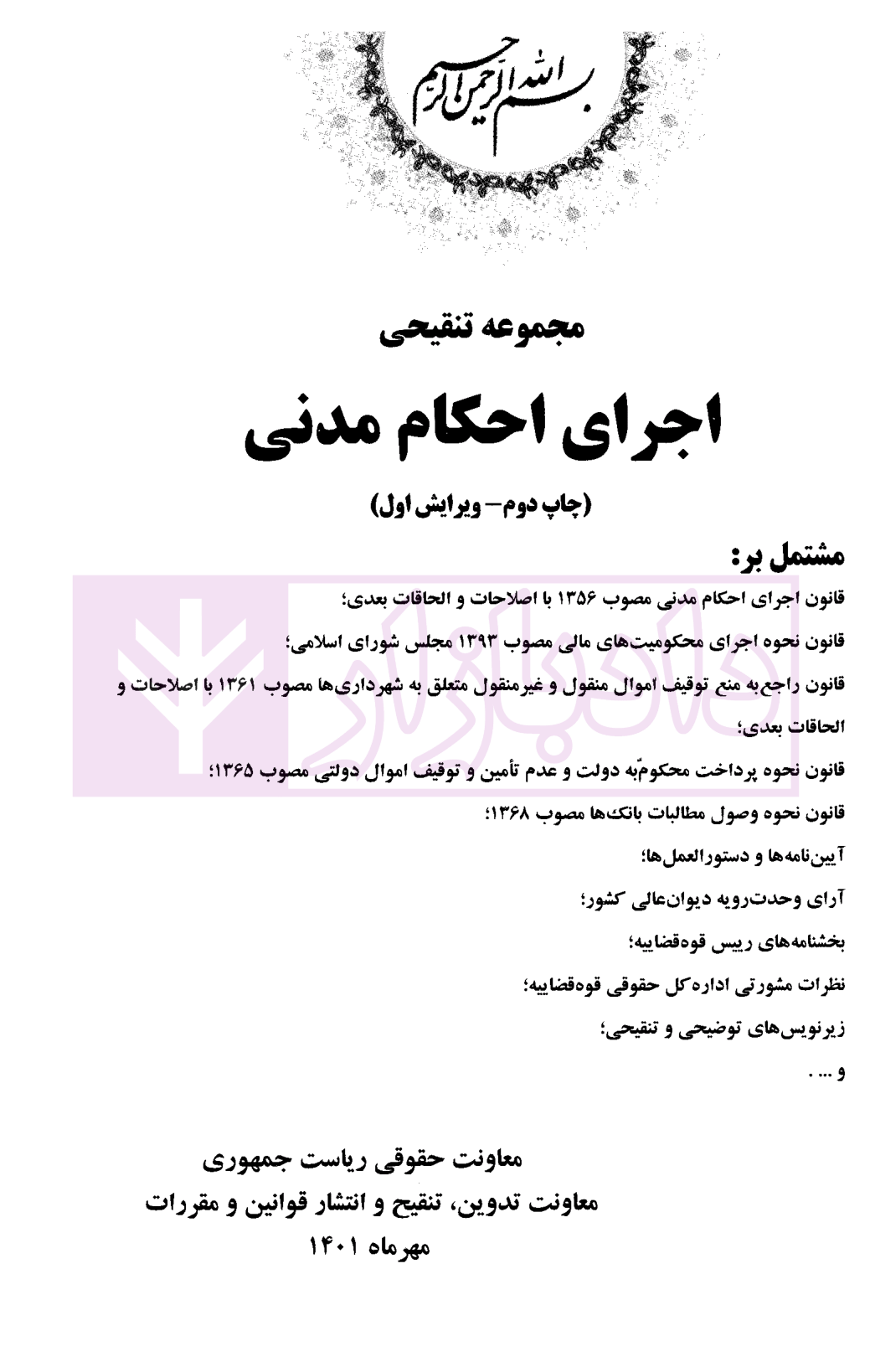 مشخصات و ویژگی کتاب مجموعه تنقیحی اجرای احکام مدنی | معاونت حقوقی ریاست جمهوری