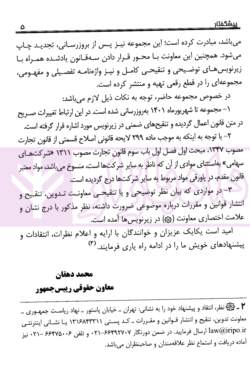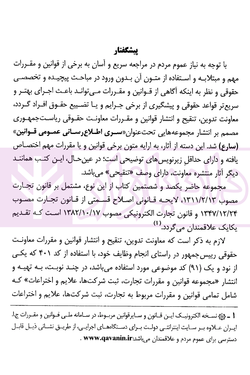مشخصات و ویژگی کتاب مجموعه تنقیحی قانون تجارت (جیبی) | معاونت حقوقی ریاست جمهوری