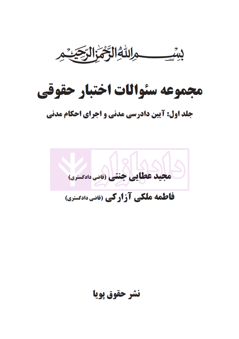 مشخصات و ویژگی کتاب مجموعه سوالات اختبار حقوقی آیین دادرسی مدنی و اجرای احکام مدنی (جلد اول) | عطایی جنتی