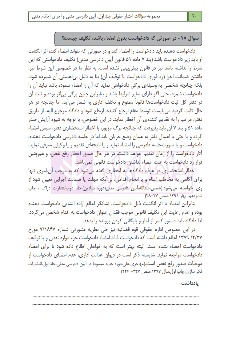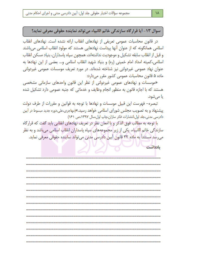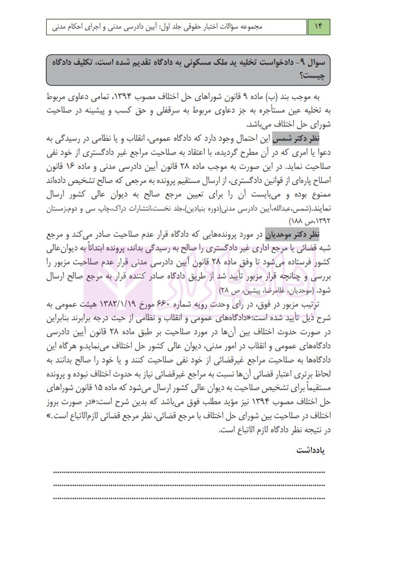 امتیاز و دیدگاه کاربران مجموعه سوالات اختبار حقوقی آیین دادرسی مدنی و اجرای احکام مدنی (جلد اول) | عطایی جنتی