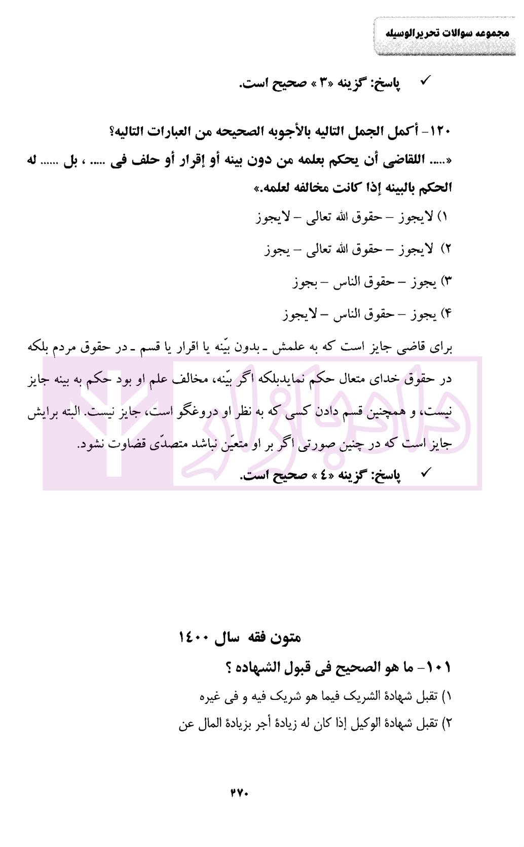 فهرست عناوین تست تحریرالوسیله سمیع پور
