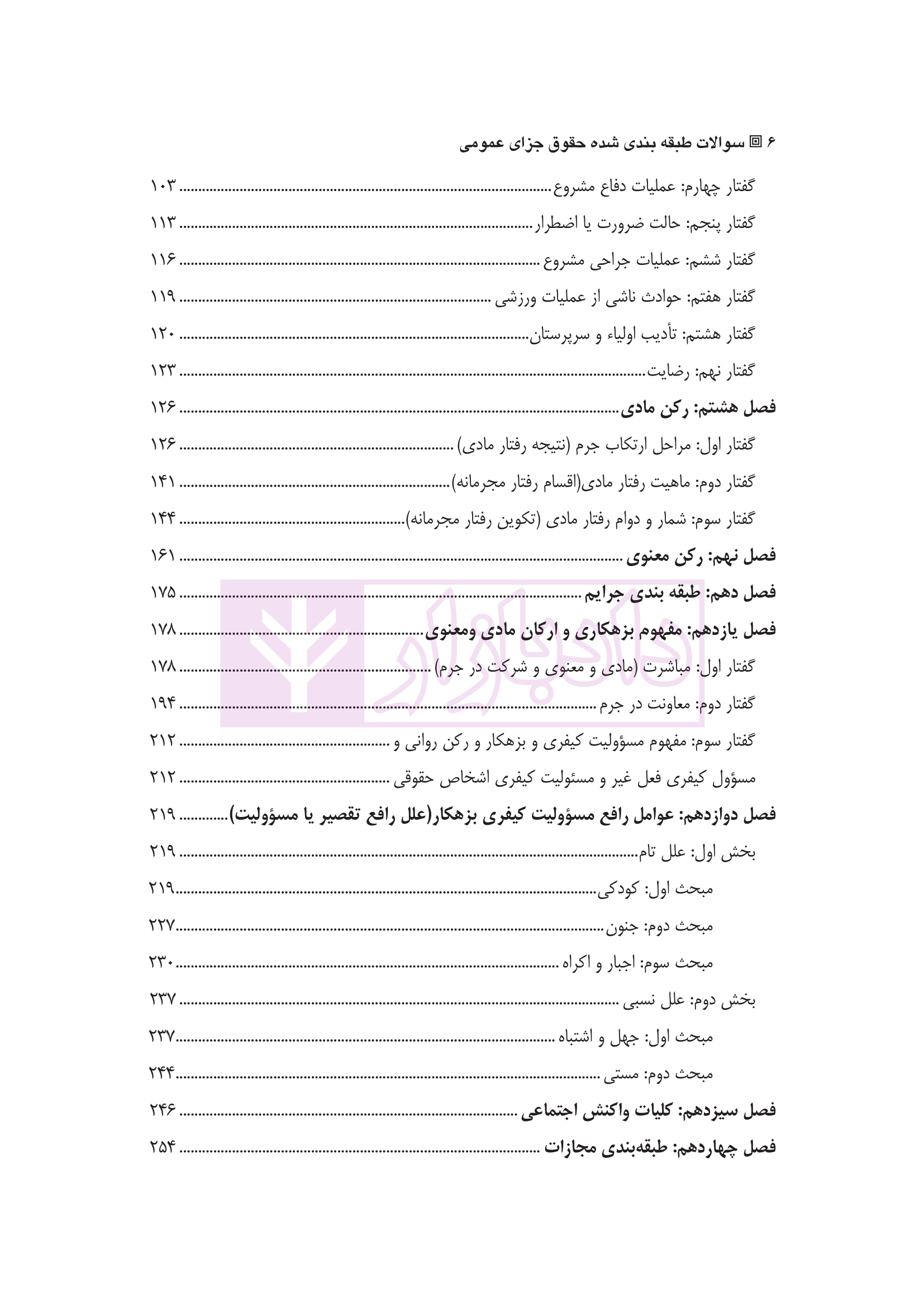 فهرست عناوین کتاب تست حقوق جزا عمومی شکری: