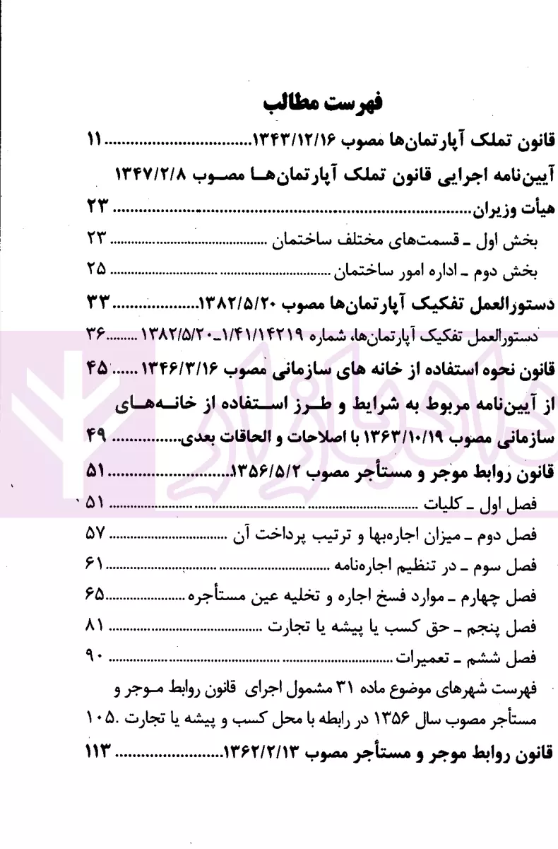 مشخصات و ویژگی کتاب مجموعه قوانین تملک آپارتمان ها و روابط موجر و مستاجر | قوه قضاییه