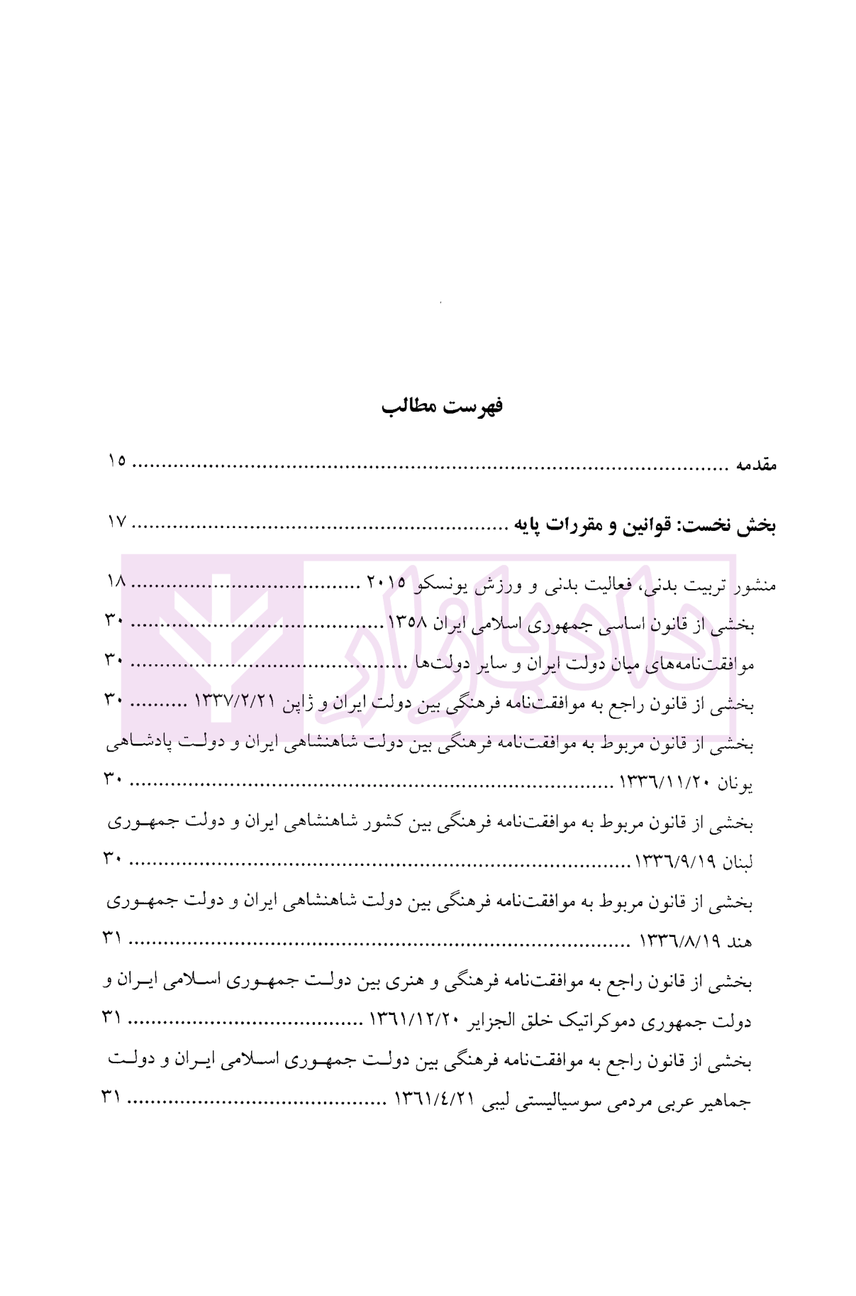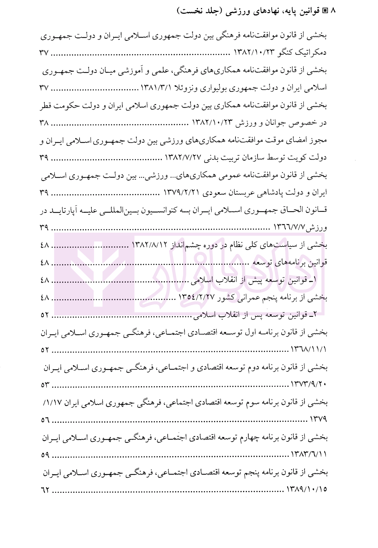 معرفی و فهرست کتاب مجموعه قوانین و آرای قضایی در حوزه ورزش ایران – کتاب نخست (قوانین پایه، نهاد های ورزشی) | دکتر محمودی