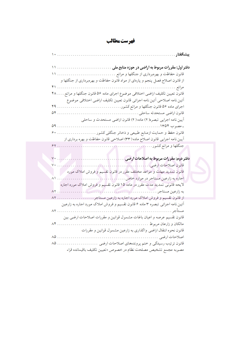 معرفی و فهرست کتاب مجموعه قوانین و مقررات اراضی | مبارکیان