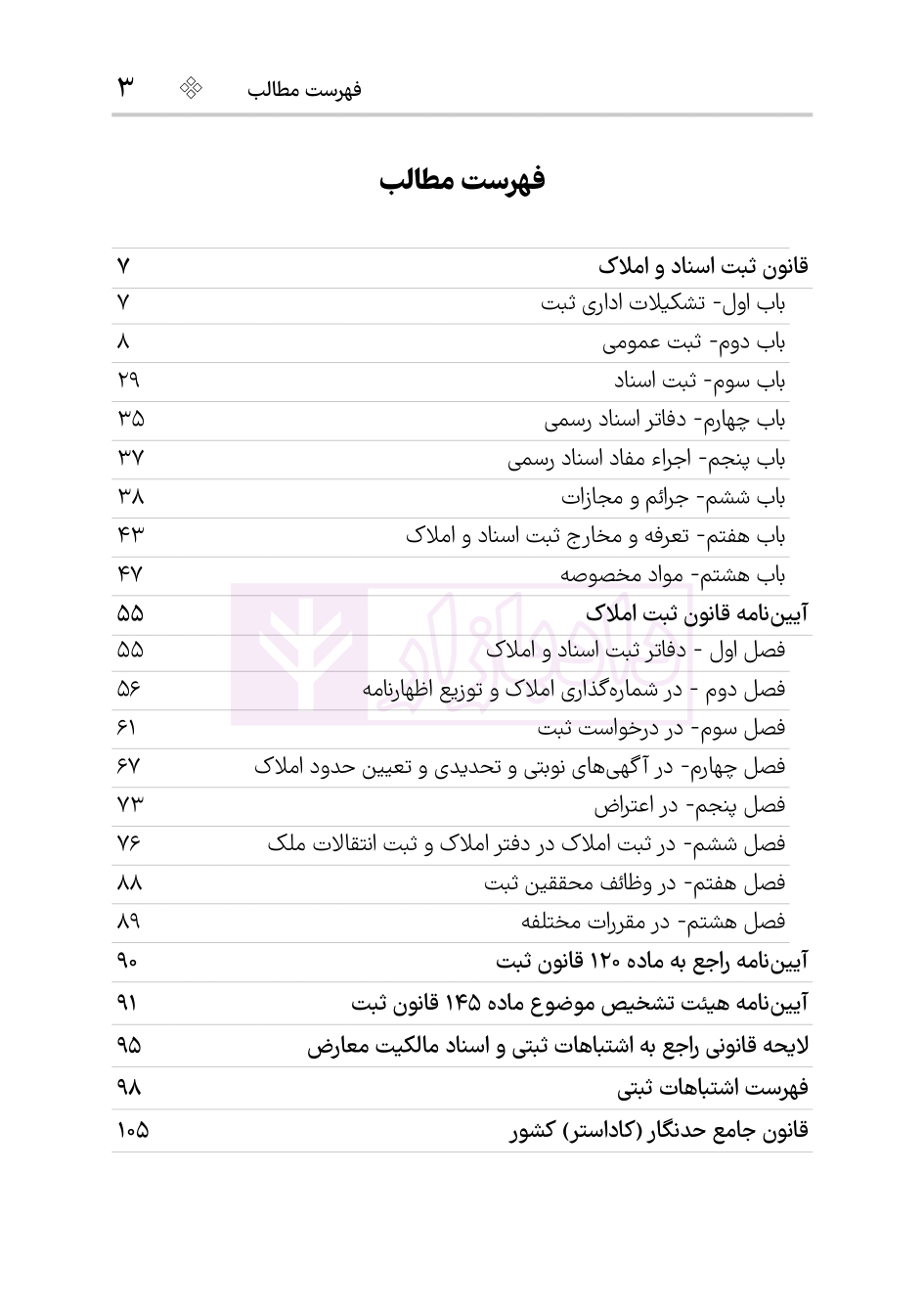 کتاب حاضر مجموعه‌ای از قوانین و مقررات پر کاربرد حقوق ثبت با آخرین اصلاحات و الحاقات است.