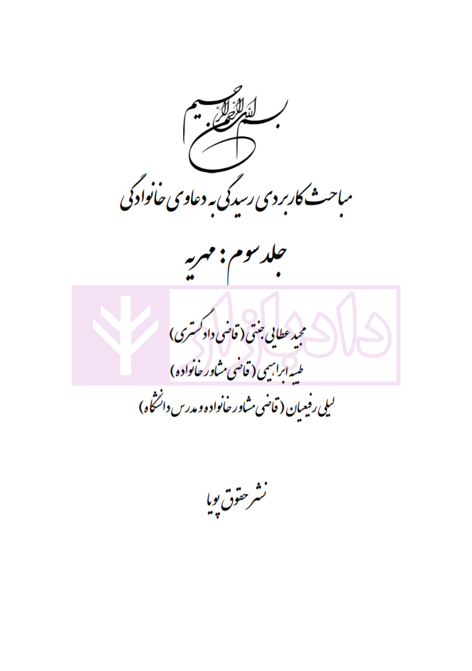 مشخصات و ویژگی کتاب مجموعه مباحث کاربردی رسیدگی به دعاوی خانواده – جلد سوم (مهریه) | عطایی جنتی
