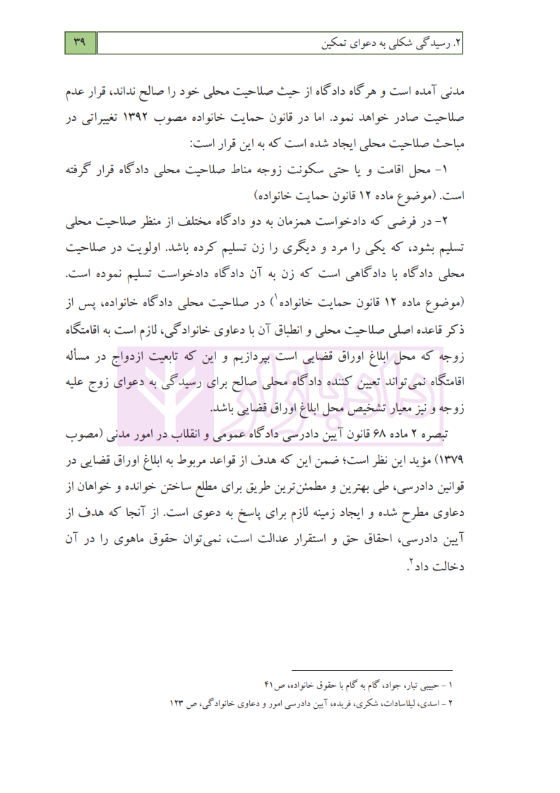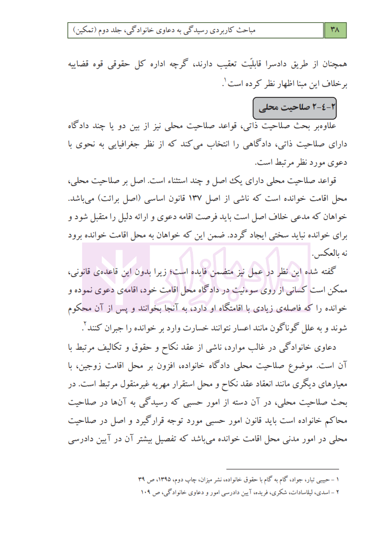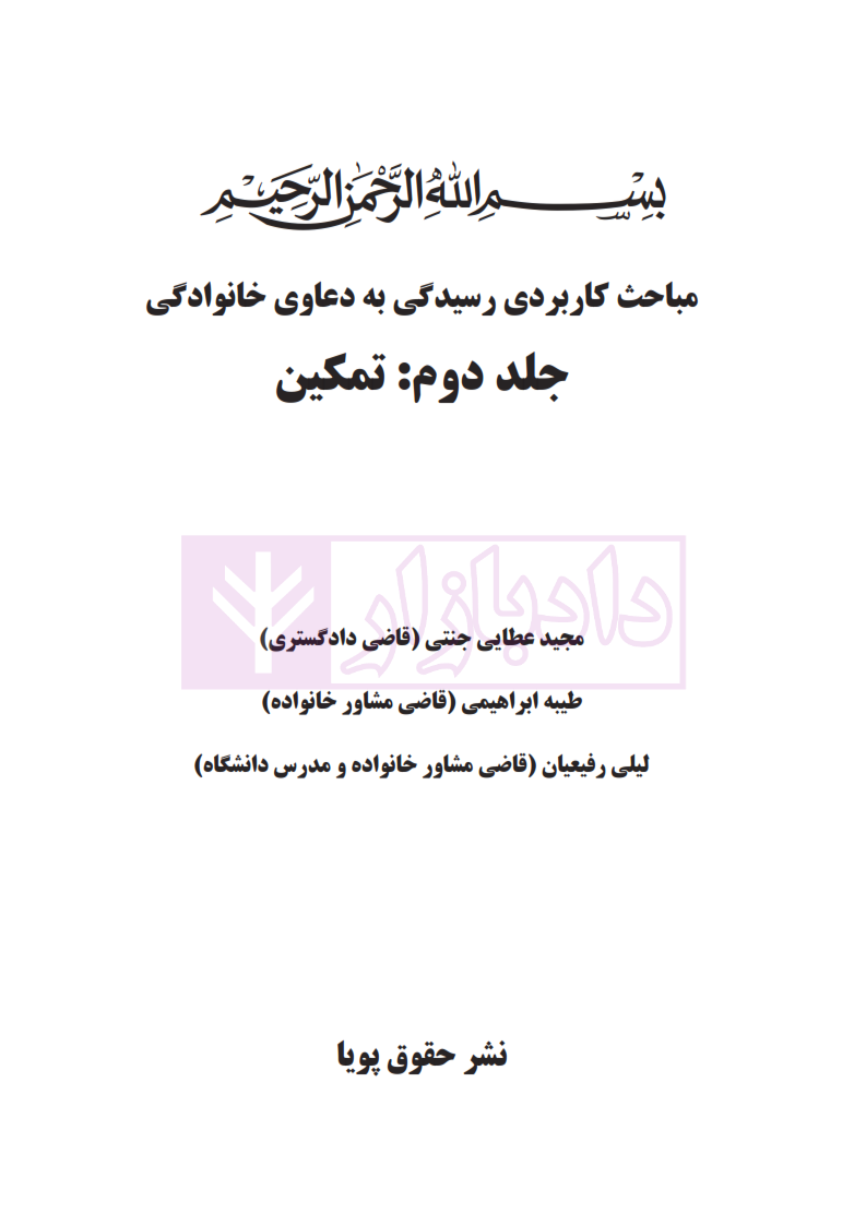 مشخصات و ویژگی کتاب مجموعه مباحث کاربردی رسیدگی به دعاوی خانواده – جلد دوم (تمکین) | عطایی جنتی