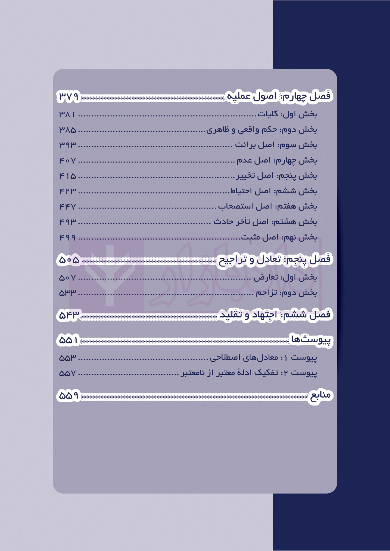 کتاب مجموعه پرسش های چهارگزینه ای اصول فقه نوشته سیدعلی بنی صدر شامل تست های طبقه بندی شده آزمونی و تالیفی اصول فقه همراه با پاسخ تشریحی مناسب آزمون وکالت میباشد.