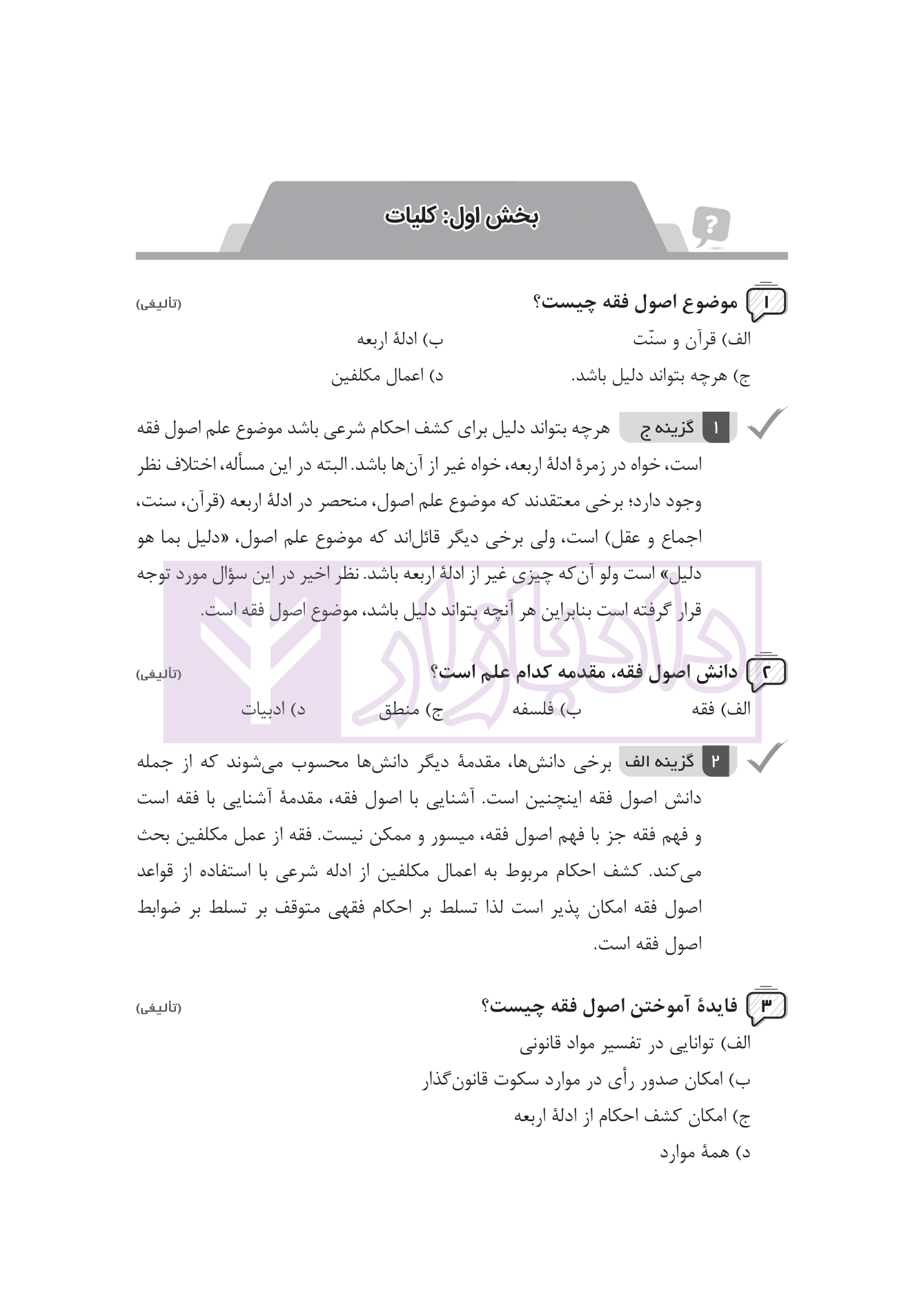 دربردارنده سوالات آزمونی وکالت و کارشناس ارشد فقه و حقوق