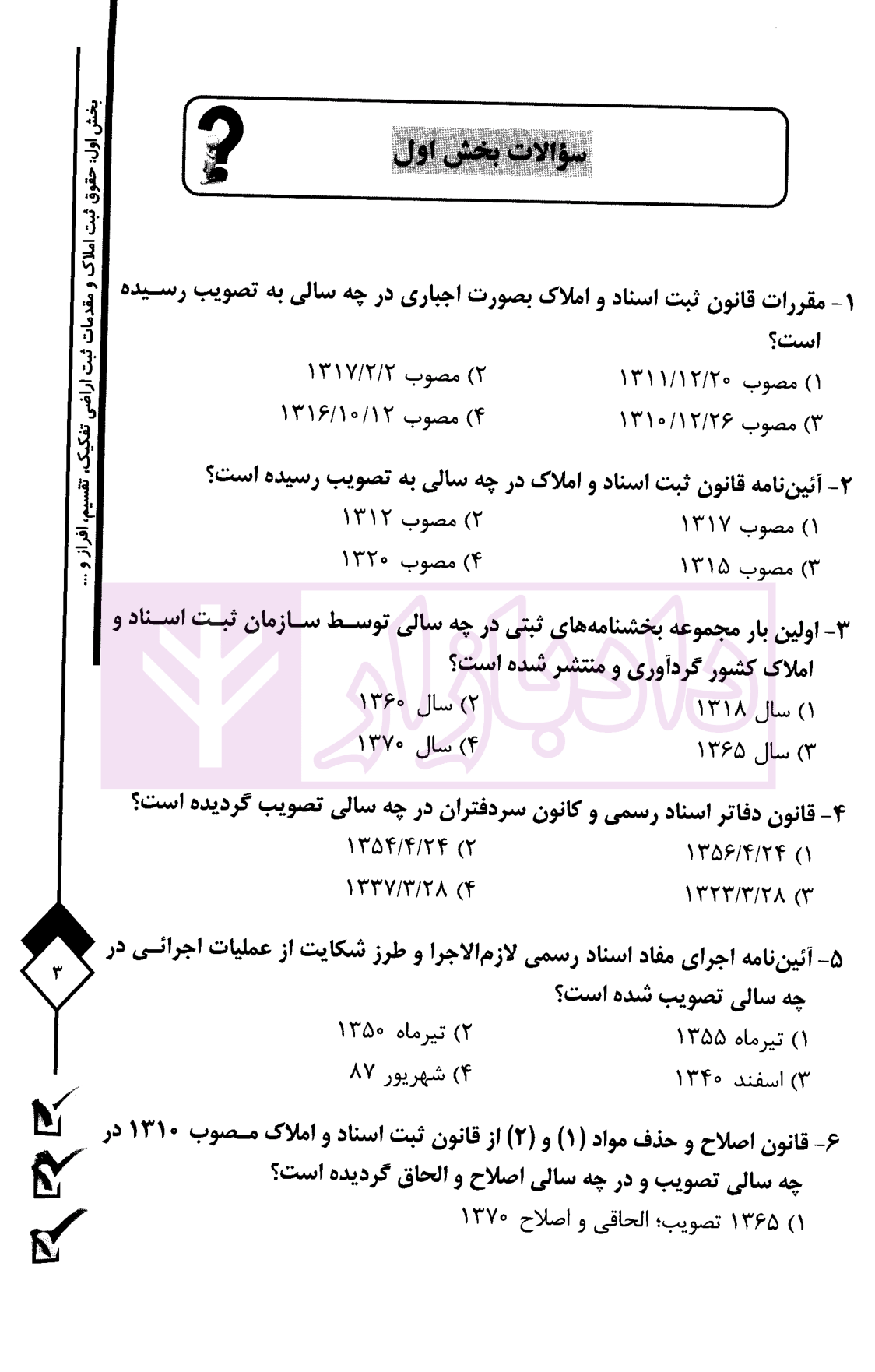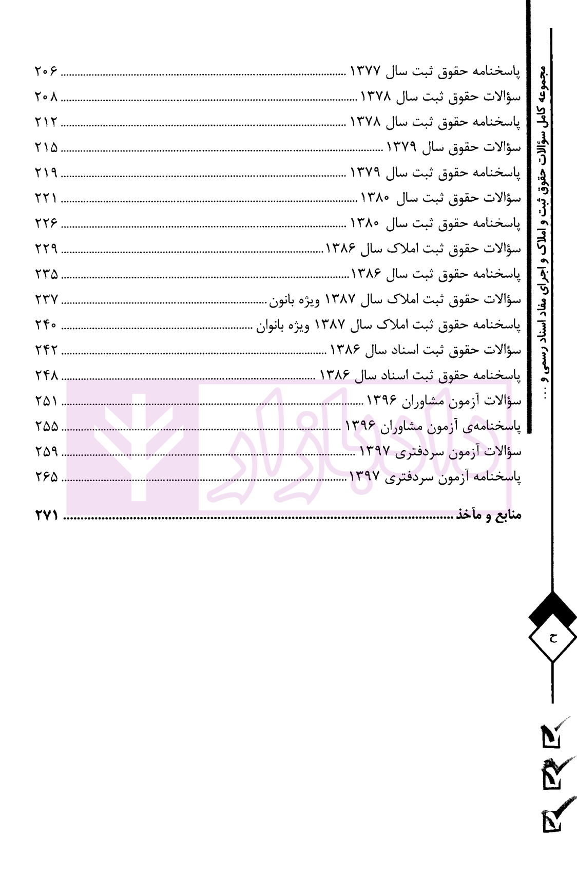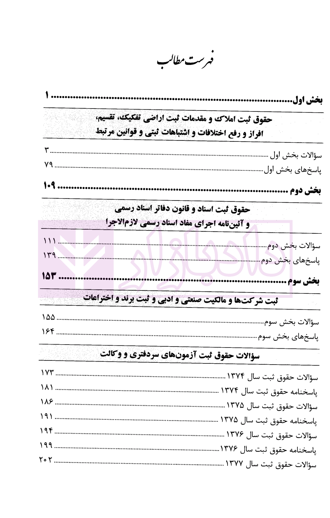 فهرست عناوین مجموعه کامل سوالات حقوق ثبت اسناد و املاک
