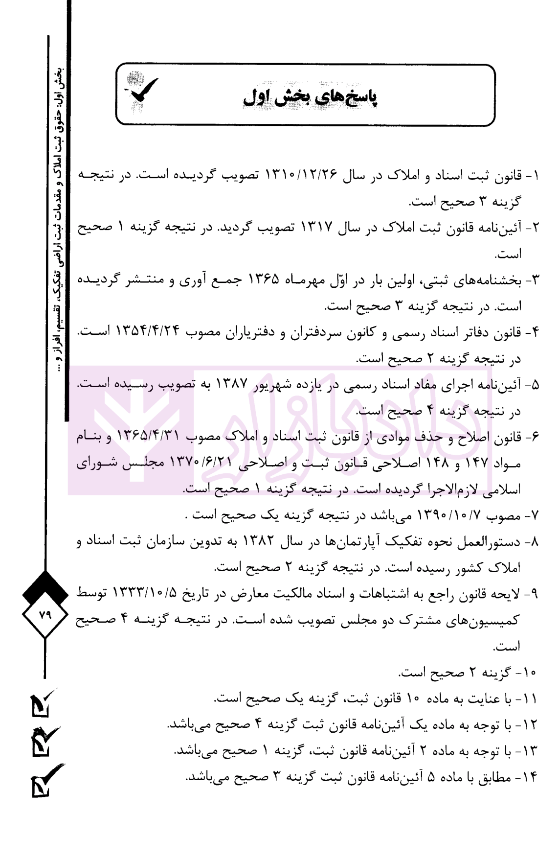 پاسخنامه حقوق املاک سال 1387 ویژه بانوان