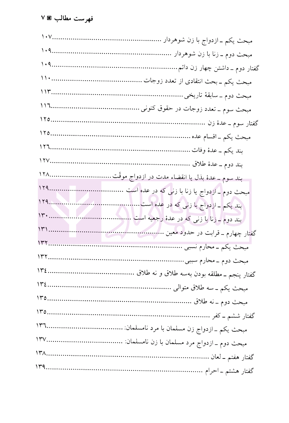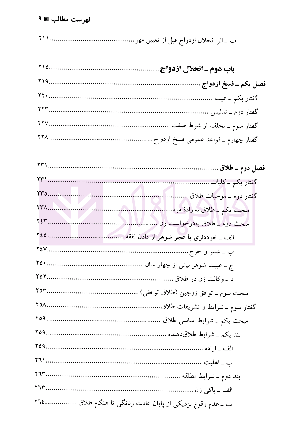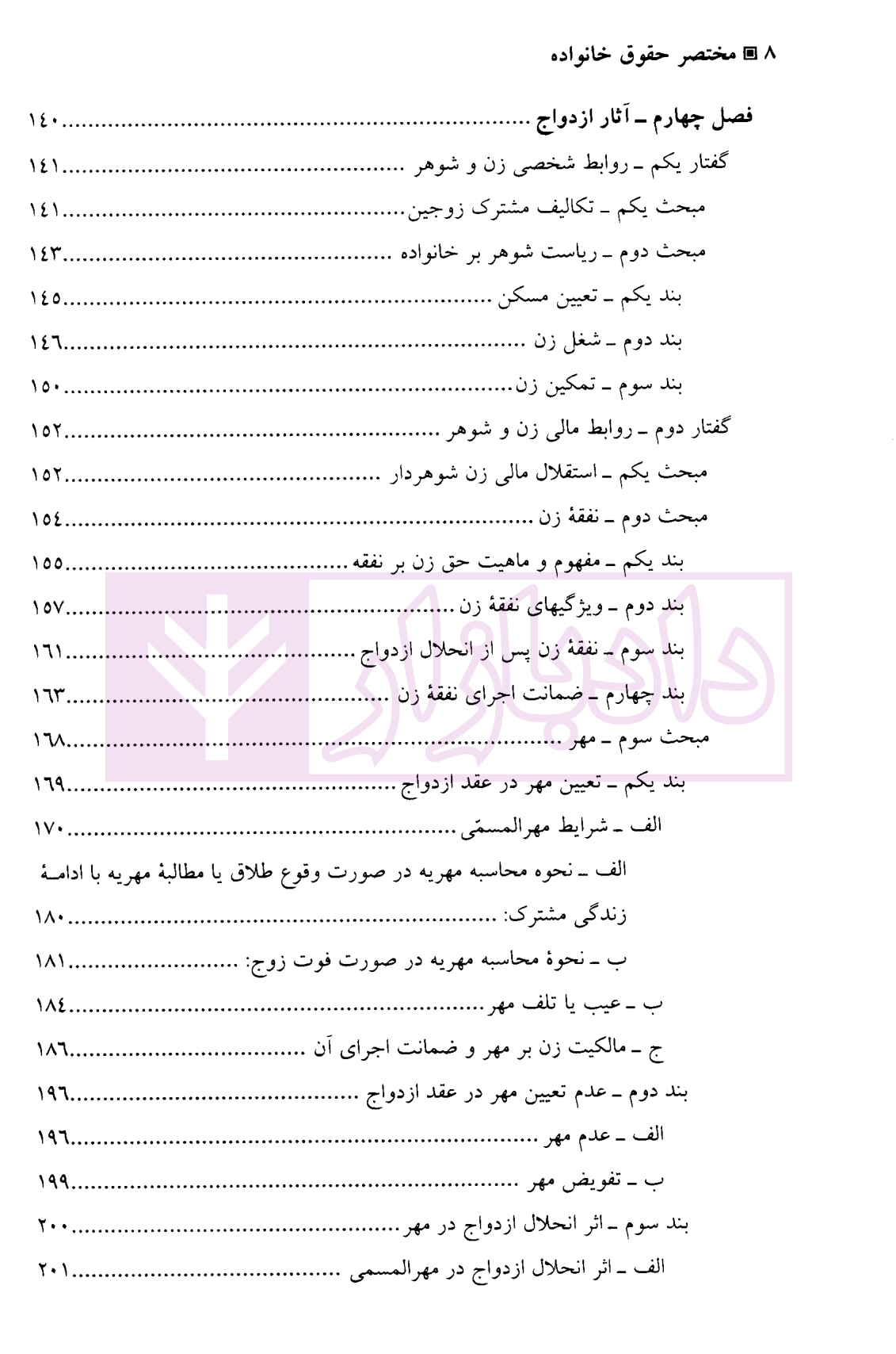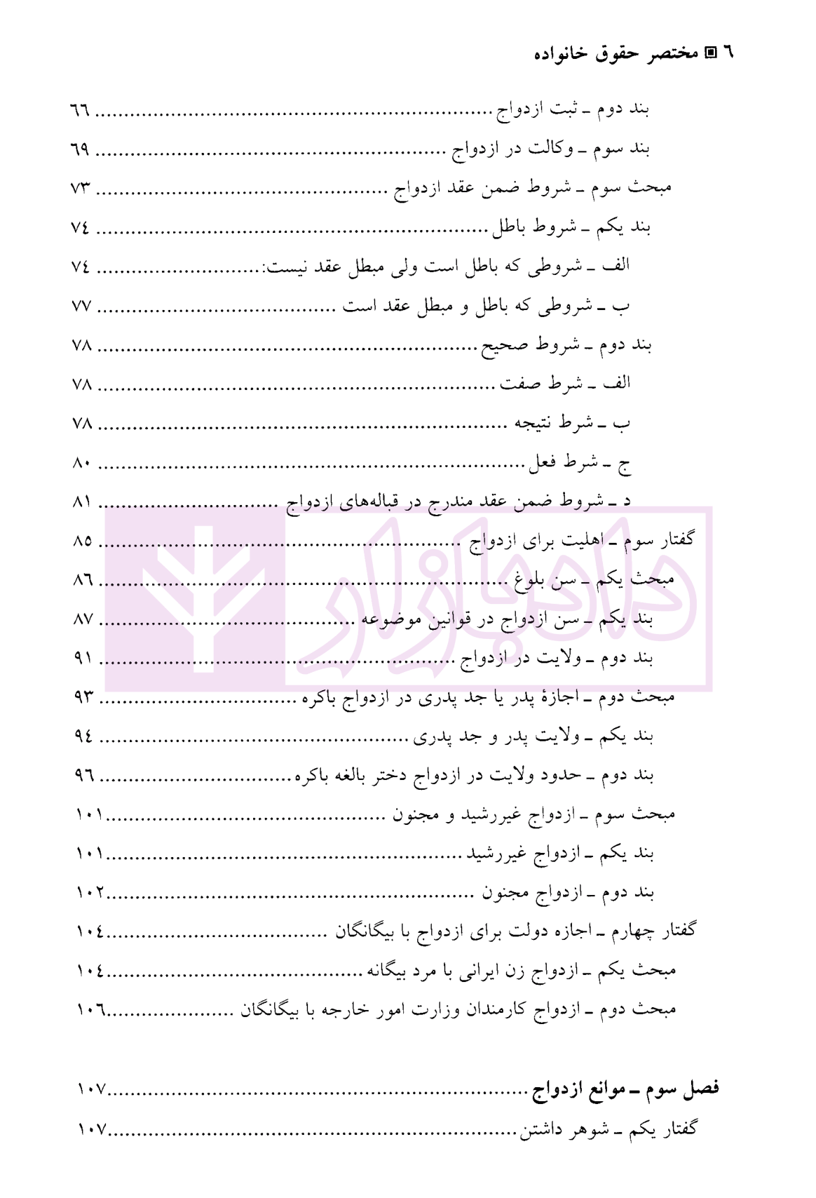 فهرست عناوین کتاب مختصر حقوق خانواده