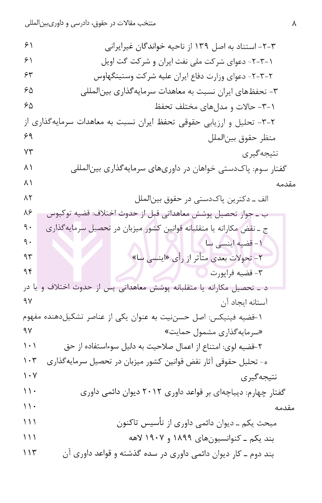 مشخصات و ویژگی کتاب منتخب مقالات در حقوق، دادرسی و داوری بین المللی – جلد اول | دکتر سیفی