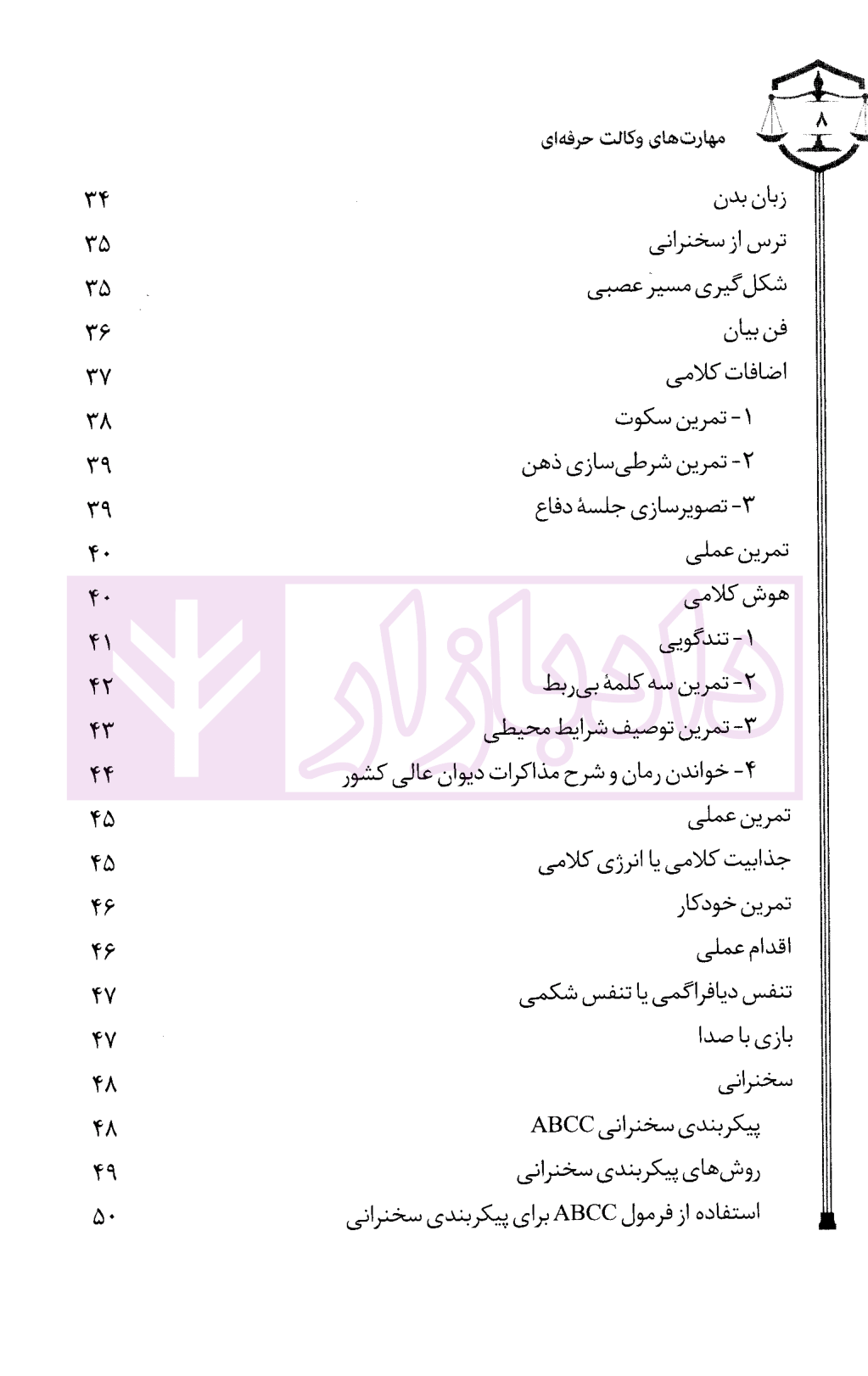 مشخصات و ویژگی کتاب مهارت های وکالت حرفه ای | رضایی