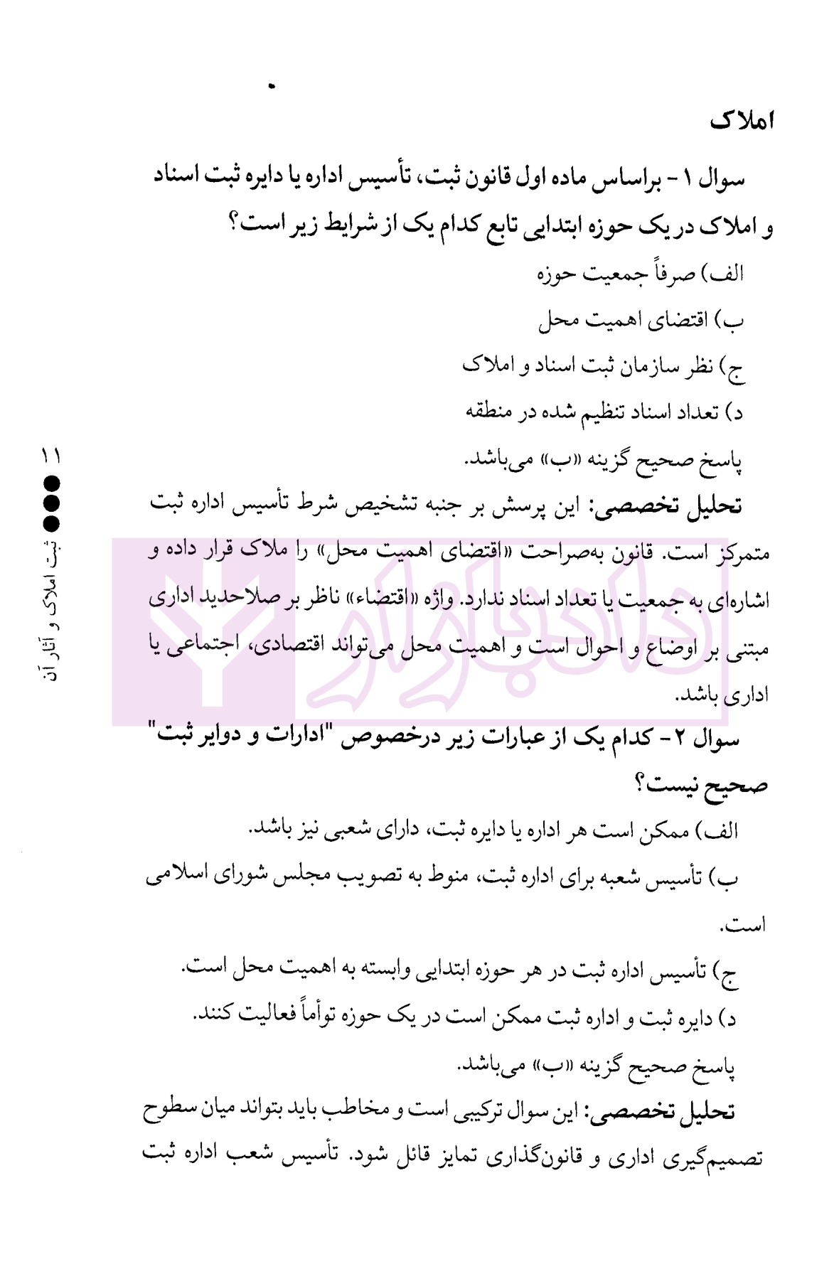 مشخصات و ویژگی کتاب نبض تست چالشی ترین سوالات حقوق ثبت | فرامرزی