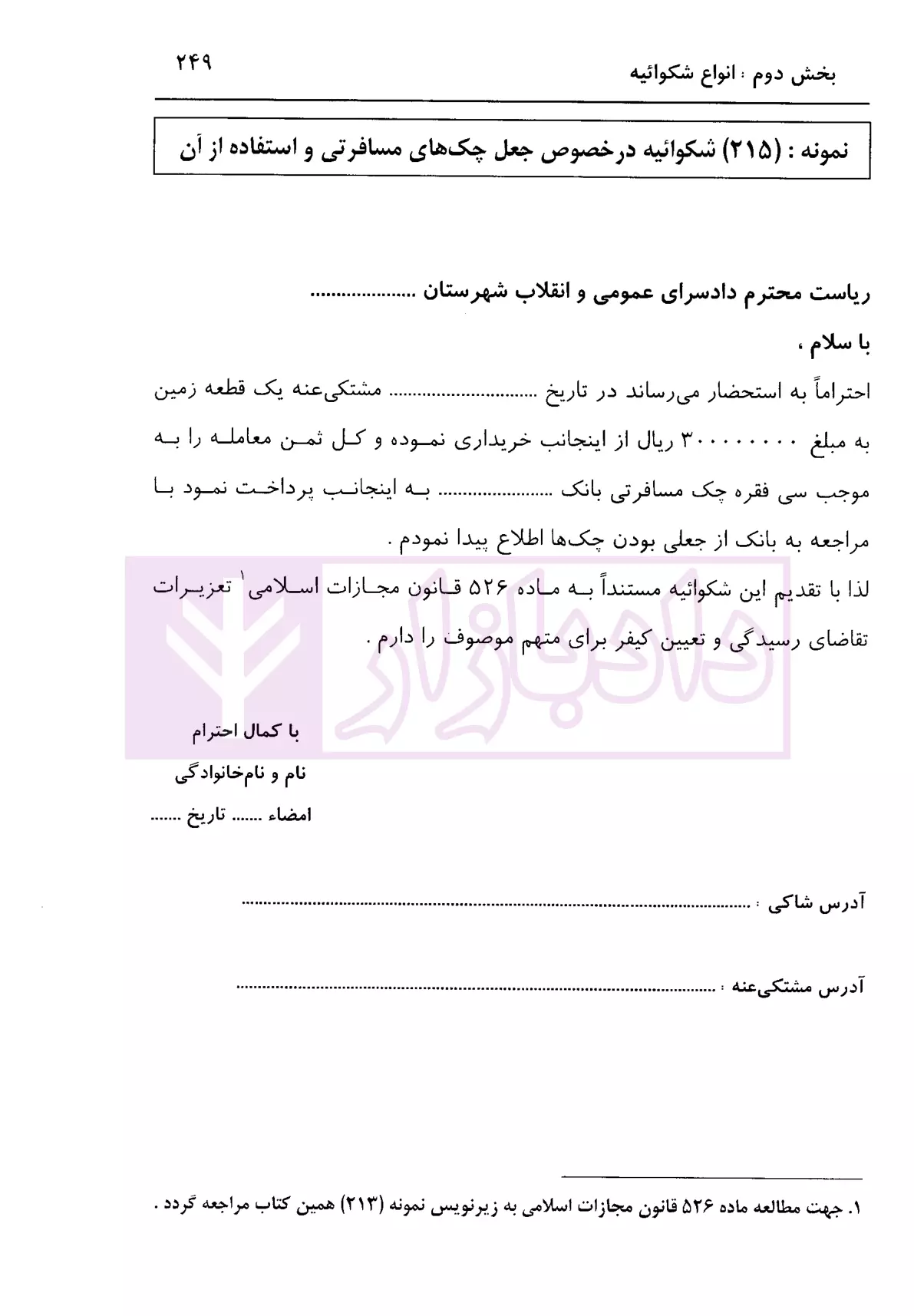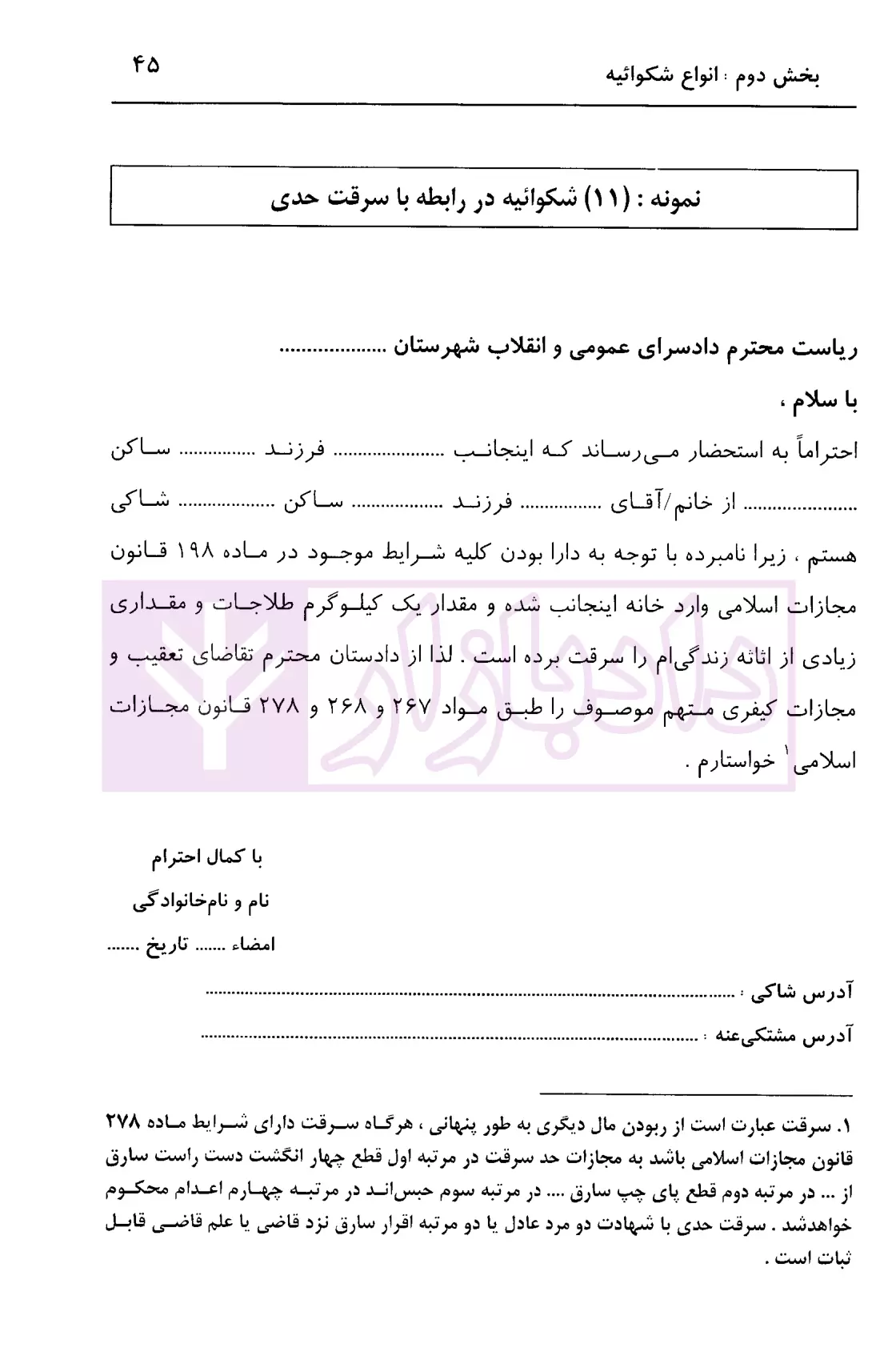 مشخصات و ویژگی کتاب نحوه عملی تنظیم و نگارش انواع شکوائیه | اباذری فومشی