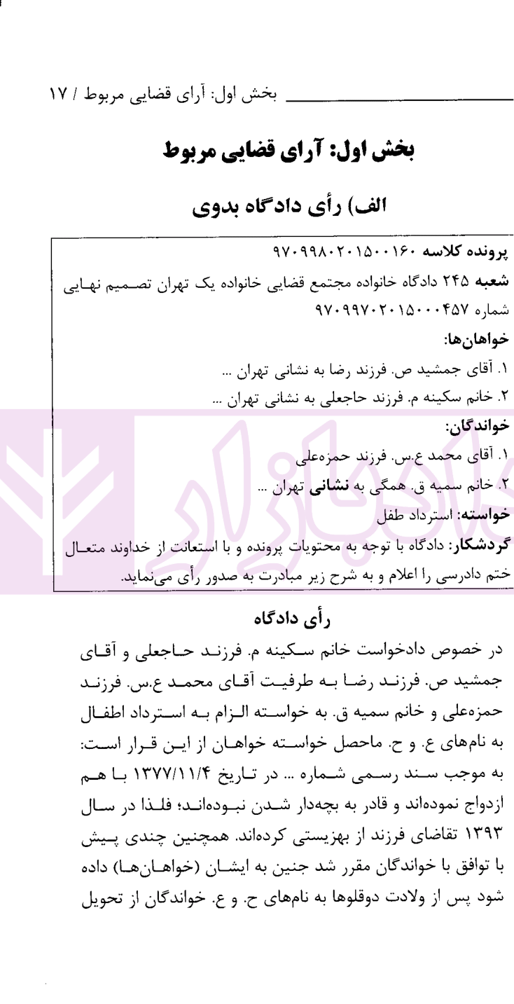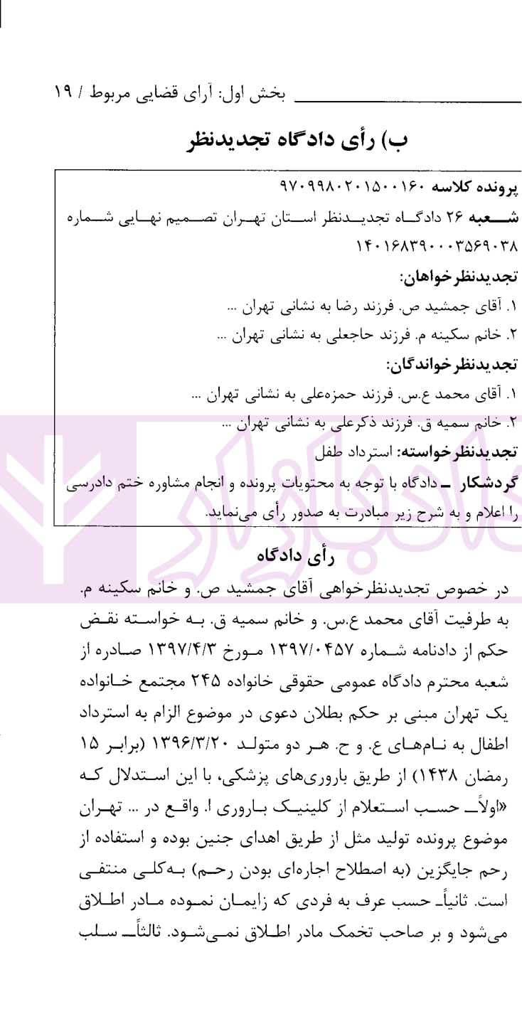 نشست نقد رای 37 – استرداد طفل (ناشی از اهدای جنین و استفاده از رحم جایگیزین) | پژوهشگاه قوه قضاییه