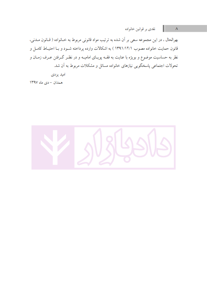 مشخصات و ویژگی کتاب نقدی بر قوانین خانواده | یزدی