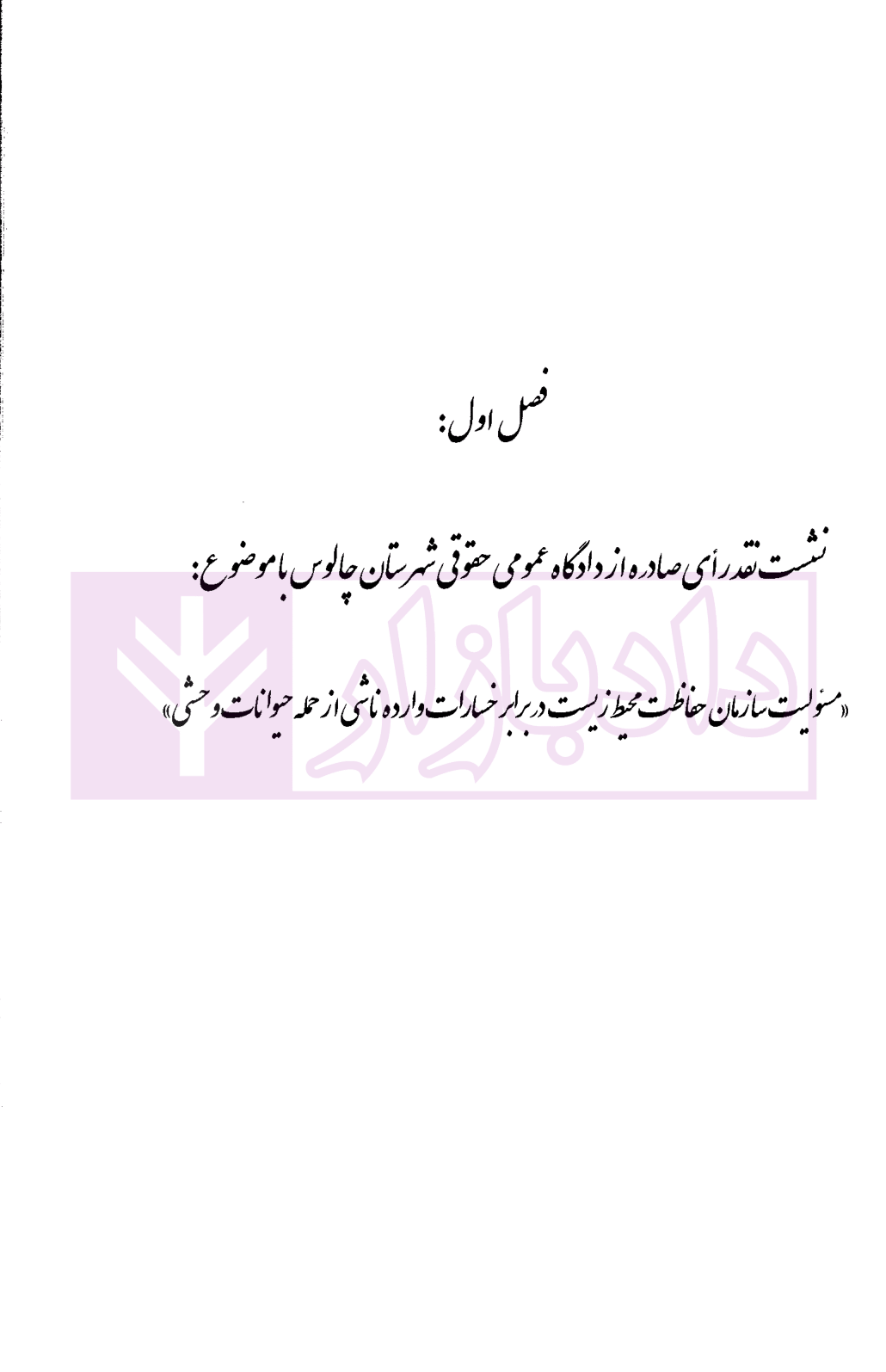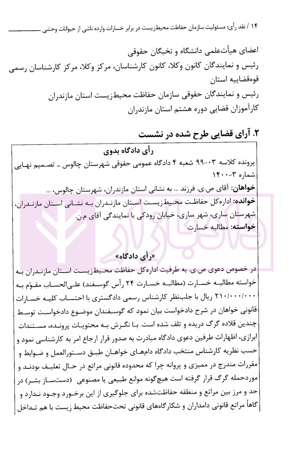 مشخصات و ویژگی کتاب نقد رای مسئولیت سازمان حفاظت محیط زیست در برابر خسارت وارده ناشی از حمله حیوانات وحشی