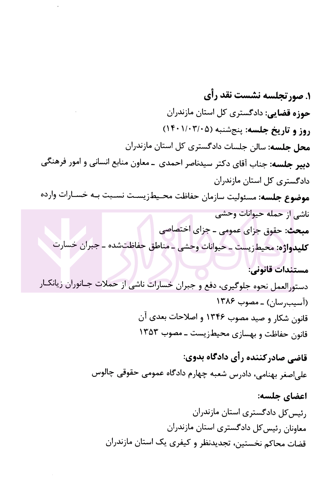 امتیاز و دیدگاه کاربران نقد رای مسئولیت سازمان حفاظت محیط زیست در برابر خسارت وارده ناشی از حمله حیوانات وحشی