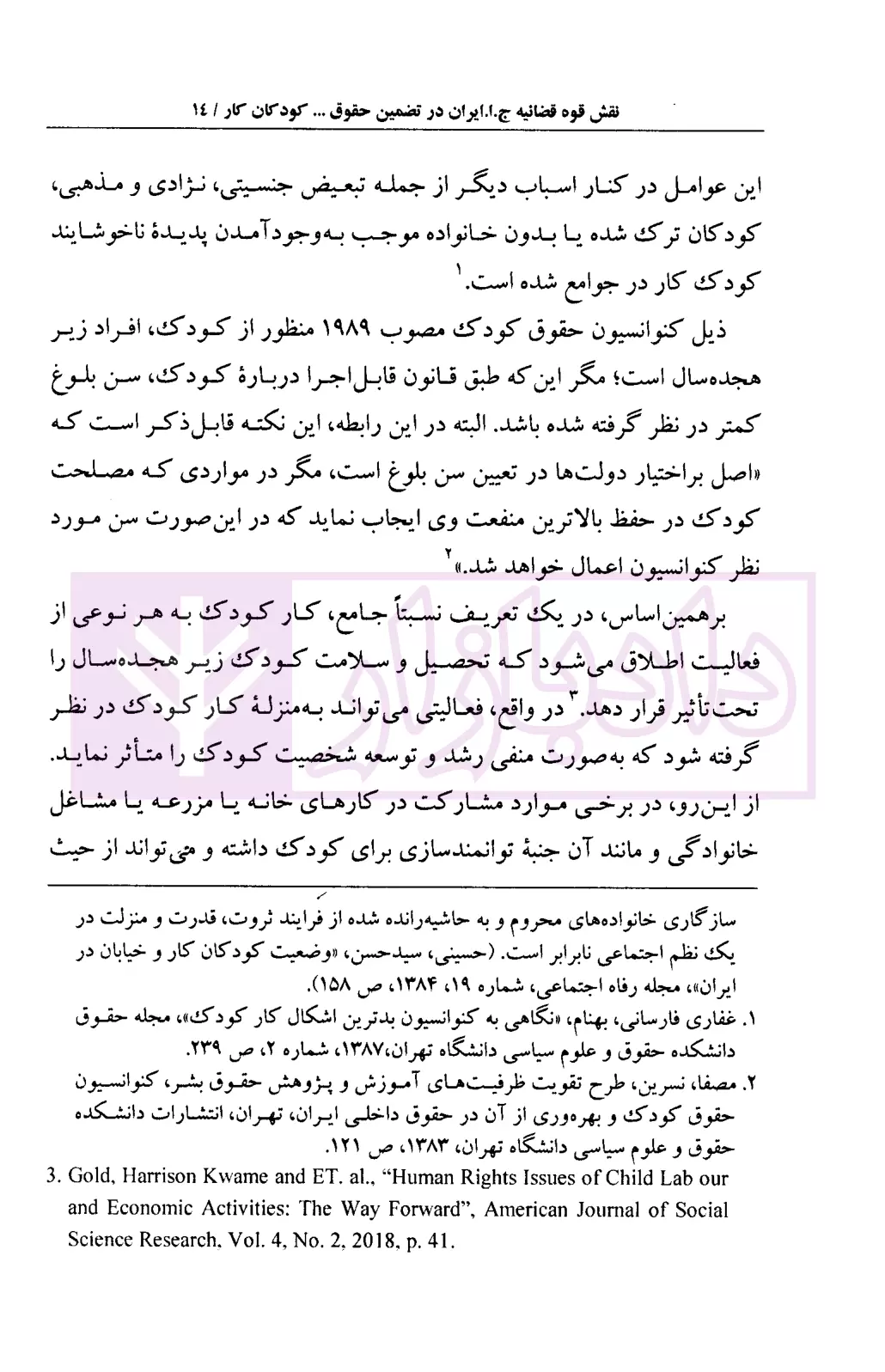 مشخصات و ویژگی کتاب نقش قوه قضاییه جمهوری اسلامی ایران در تضمین حقوق اقتصادی، اجتماعی و فرهنگی کودکان کار | آجلی