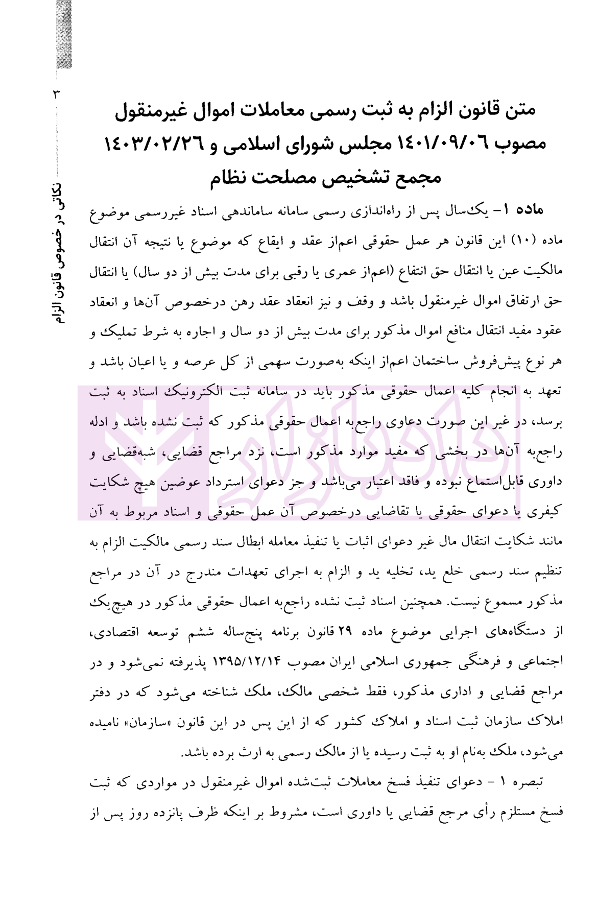 امتیاز و دیدگاه کاربران نکاتی در خصوص قانون الزام به ثبت رسمی معاملات اموال غیر منقول | شاهبان
